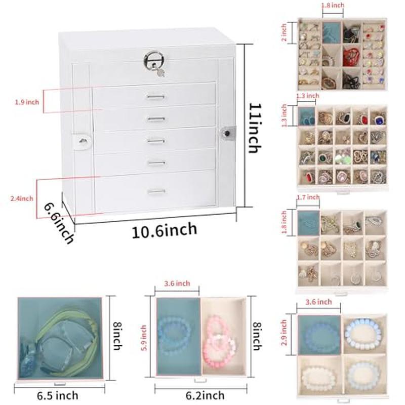 8-Piece Measuring Spoon Scoop Set Durable Ceramic Dishwasher Safe Vibrant Colors 27.97 USD 30.08 USD Free shipping 7% off Dual Alarm Clock Radio with Bluetooth Speaker and 1.4" Orange LED Display NEW 28.77 USD 30.94 USD Free shipping 7% off LED Alarm Clock with Indoor Temperature, Bedside Alarm Clock, 12/24 Hour Time 28.78 USD 30.95 USD Free shipping 7% off 6 Piece Ceramic Nesting Bowl Set W/ Snap Lids Vintage Kitchen Storage Prep New 28.8 USD 30.97 USD Free shipping 7% off Stainless Steel 3qt Saucepan W/ Straining Lid Pour Spouts Induction Safe New 28.84 USD 31.01 USD Free shipping 7% off 3Qt Nonstick Straining Saucepan W/ Lid Dishwasher Safe Kitchen Cooking Pot New 28.78 USD 30.95 USD Free shipping 7% off 4.8qt Nonstick Caldero Dutch Oven Aluminum Stock Pot with Glass Lid Cookware 25.9 USD 27.85 USD Free shipping 7% off Reversible Cast Iron Grill Griddle Dual Use Heavy Duty Durable for BBQ Cooking 22.89 USD 24.61 USD Free shipping 7% off Large 3 in. Red LED Electric Alarm Clock Hi/Lo Display Brightness Battery Backup 26.33 USD 28.31 USD Free shipping 7% off 10.5 Inch Cast Iron Griddle Nonstick Easy Grip Handle Oven Grill Cooking New 28.69 USD 30.85 USD Free shipping 7% off 3 Piece Nonstick Frying Pan Skillet Set Dishwasher Safe Aluminum Cookware New 27.58 USD 29.66 USD Free shipping 7% off 23 Piece Baking Set Mixing Measuring Bowls Cups Spoons BPA Free Non-Slip New 25.9 USD 27.85 USD Free shipping 7% off About this item Multi-functional Jewelry Holder Organizer: The first layer on jewelry box with satisfy all your daily makeup needs. It with 6 earrings grids for stud earrings,brooches, Christmas charms. And it has 14 ring lines for ring holder, and 1 big mirror. Long Necklace Organizer: With excellent craftsmanship, this jewelry organizer will surprise you with its superior quality. With 16 necklace hooks on 2 jewelry organizer, you can hanging 16 necklaces in it. Makeup Organizer: The bottom drawer is really a huge drawer for your big stuffs, even for you cosmetics. With 5 drawers and 1 layer, you can take it as your makeup and jewelry box. All your daily storage needs will be take in it. Space and Time Saving for Makeup Table: With our 6 layer jewelry box, all your jewelry will be in good order and easy to reach. From then on, you have a bright dresser that saves space and makes your room look neater and more elegant. In addition, our jewelry travel boxes are designed to categorize your jewelry at a glance, shortening search time. Ideal Jewelry Gift Box : This PU leather jewelry box looks elegant and thoughtful. It is a perfect gifts for yourself, your friends, your wife or your mother for birthdays, Christmas, Valentine's Day, Mother's Day and anniversaries. This jewelry holder can be used not only as a girl's jewelry box, ring storage box, necklace storage box, earrings storage box, but also as a gift box for bracelets. You may also like Gardening Tools 9 pices Heavy Duty Garden Tools with Non-Slip Rubber Grip & Bag 38.86 USD 41.79 USD Free shipping 7% off 20V Cordless Seed Spreader 6-Speeds 5-Ft. Max Distance, Fertilizer Spreader 51.14 USD 54.99 USD Free shipping 7% off Sump Pump Submersible 1/2 HP 2301 GPH 31FT, Utility Pump for Water Removal 65.99 USD Free shipping Nitrogen Regulator with Hose,0-600 PSI and 0-4000PSI Output Pressure 52.68 USD Free shipping Starter Rock Tumbler Kit - Durable Leak-Proof Rock Polisher for Kids 43.99 USD Free shipping Garden Tool Set 10 Piece Stainless Steel Heavy Duty Gardening Tool Set Kit 36.82 USD 39.59 USD Free shipping 7% off 1.6 HP Submersible Sump Pump 4858GPH Clean & Dirty Water Transfer Pump for Pool 92.39 USD Free shipping Dual Fan Window Fan with Quiet Setting, Reversible Airflow Control, with 3-Speed 40.91 USD 43.99 USD Free shipping 7% off Ultimate Rock Polishing Supplies Kit, 4 Stage Bulk Grit, Ceramic Pellets 41.79 USD Free shipping Electric Brad Nailer, NTC0040 Electric Nail Gun/Staple Gun for Woodworking 149.79 USD Free shipping Window Fan with Reversible Airflow Quiet, Twin 9" Blades, Full Remote Control 56.26 USD 60.49 USD Free shipping 7% off 1HP 750W Submersible Sump Pump Electric 3 in 1 Clean/Dirty Water Utility Pump 54.99 USD Free shipping
