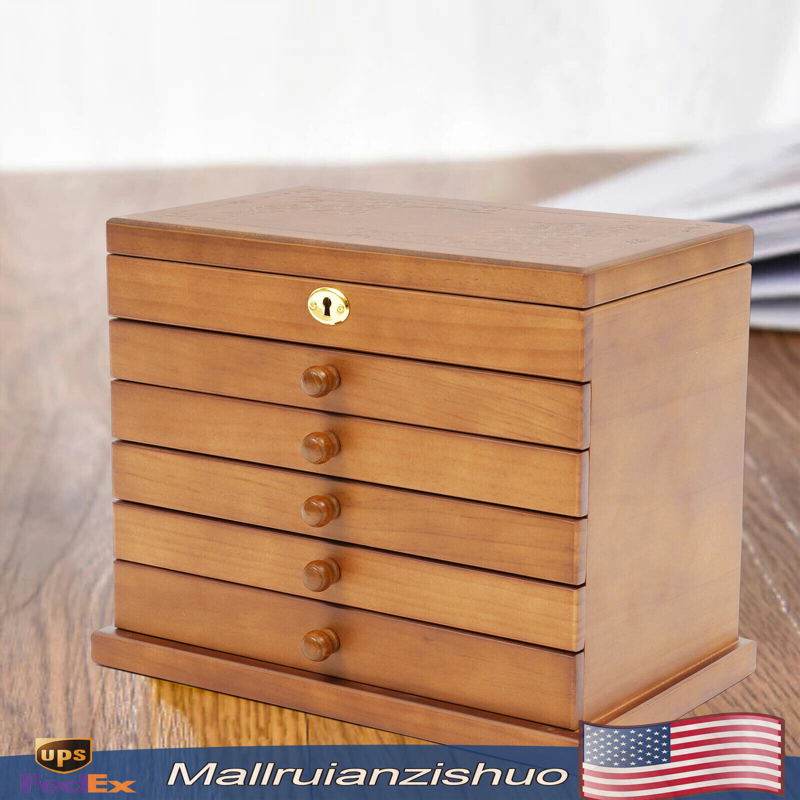 Jewelry Box Wood for Wowen 6-Layer Large Organizer Box with Mirror & 5 Drawers Description Is your jewelry often placed in a cluttered manner and can not be found? Do you have too much jewelry without a big enough storage box? If you answered yes to these questions, then you should not miss this six-layer jewelry box. The six-layer storage design allows you to store many different kinds and sizes of jewelry. The 4-leaf clover carving on the surface and the wooden material make this jewelry box more vintage and elegant, which not only helps to store but also can be used as a decorative piece in your home. Key Features High-quality Material: The jewelry box is made of MDF and wood with veneer and painting, which is not only very durable but also good-looking. The interior is lined with soft velvet fabric, which can ensure your jewelry will not be scratched and crushed. Large Capacity: This jewelry box has a built-in mirror and 6 drawers. Each drawer is designed in different sizes to store many different kinds and sizes of jewelry. High-definition Mirror: The mirror inside the jewelry box is very high-definition and can be used directly to wear jewelry without having to buy additional mirrors. Usually, you can also use it as a makeup mirror, which is very practical and convenient. Elegant Design: This item is made of classical wood with a four-leaf clover carving pattern on the surface. All these unique designs make this jewelry box look more elegant and chic. Combine at Will: All these drawers are removable. You can recombine and place each layer according to your needs and habits. Full Pull-out Drawer: The drawer of this jewelry box is a full pull-out design, which can display all the jewelry and make it more convenient for you to get it. Ideal Gift: This jewelry box has a unique design with a beautiful appearance and a large capacity with practical features. It is an ideal gift for Valentine's Day, Mother's Day, Thanksgiving, Christmas, birthday, and weddings. Fine Workmanship: From the smooth surface to the soft lining and even the sturdy latches and hinges, giving you a better sense of user experience. Details Velvet Fabric: The lining of this jewelry box is made of soft, high-quality velvet fabric that is comfortable to the touch. It can protect your jewelry well from being crushed and scratched. Safety Latch: The safety latch on the lid is designed to keep all drawers and the cabinet securely locked. This will protect your rings, earrings, necklaces, watches, and other jewelry accessories. Compartments: Each layer is divided into different sizes of compartments. You can store different kinds or sizes of jewelry separately so that you can pick and place them clearly. Application This jewelry box can be used to store pendants, bracelets, brooches, necklaces, rings, earrings, and other larger jewelry. Specifications Colors: Brown Layer: 6 Layers Types: with Mirror Material: MDF+Wooden+Velvet Lock: Key Lock Product Size: 29.5*18.5*25cm/11.61*7.28*9.84inch The First Drawer Size: 28*15.7cm/11.02*6.18inch The Second Drawer: 8 Slots / Each Size: 6.5*7cm/2.55*2.75inch The Third Drawer: 6 Slots / Each Size: 8.5*7cm/3.34*2.75inch The Fourth Drawer: 4 Slots / Each Size: 13*7cm/5.11*2.75inch The Fifth Drawer: 3 Slots / Each Size: 8.5*14.7cm/3.34*5.78inch The Sixth Drawer: 1 Slot / Size: 26.4*14.7cm/10.39*5.78inch Net Weight: 2.5kg/5.51 lbs Package Included 1* Wooden Jewelry Box 1* Key Notes We aim to provide quality products and services. If you have any problems, please feel free to contact us. We will reply and solve the problem for you as soon as possible. Please allow the slight color difference caused by the shooting light and 1-3cm error due to manual measurement, and make sure you do not mind before you order. Payment Delivery details Terms of sales About us Contact us Payment We accept ebay payment 。 Fees such as import duties, taxes are not included in the item price or shipping costs. These charges are the buyer's responsibility. Delivery details Shipping: 2-9 working days to: USA Terms of sales We maintain high standards of excellence and strive for hundred percent customer satisfaction. Feedback is very important to us. We hope that you contact us immediately before you give neutral or negative feedback, so that we can address your concerns. It is impossible to address issues if we do not know about them! About us Your satis faction is our ultimate goal. We work hard to earn your trust and future business. Our certified technicians have tested each item before shipping. The unit comes with 1 year limited warranty on all manufacturing defects. a) If you receive a defective item, you may return it or ask for a discount. Please contact us within 14 days after you receive the package. b) What you returned must be intact and in its original packaging as re? u. Customer is responsible for shipping costs of the returned item. c) We will cover the cost of shipping back t with the shipping rate indicated in the registration page. We will send you a new unit or refund the full payment you paid. Thank you. Contact us Business Hour Business Hour: Monday To Friday: 8:30 AM to 5:00 PM (Beijing China time) Due to time zones, our reply to your questions may not be immediately. But within above working time, we will reply your email within 24 hours. If it's non-workdays, please kindly be patient and wait till Monday. Please contact us with ebay message. Please feel free to contact us if you have any questions. Monday To Friday: 8:30 AM to 5:00 PM (Beijing China time) Due to time zones, our reply to your questions may not be immediately. But within above working time, we will reply your email within 24 hours. If it's non-workdays, please kindly be patient and wait till Monday. Please contact us with ebay message. Please feel free to contact us if you have any questions. shipping notice Can not ship to Puerto Rico,Alaska/Hawaii Brand Unbranded Material MDF+Wooden Type with mirror Lock Key lock Color B