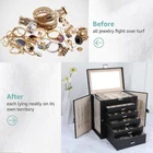 Multi-functional Jewelry Holder Organizer: The first layer on jewelry box with satisfy all your daily makeup needs. It with 6 earrings grids for stud earrings,brooches, Christmas charms. And it has 14 ring lines for ring holder, and 1 big mirror. Long Necklace Organizer: With excellent craftsmanship, this jewelry organizer will surprise you with its superior quality. With 16 necklace hooks on 2 jewelry organizer, you can hanging 16 necklaces in it. Makeup Organizer: The bottom drawer is really a huge drawer for your big stuffs, even for you cosmetics. With 5 drawers and 1 layer, you can take it as your makeup and jewelry box. All your daily storage needs will be take in it. Space and Time Saving for Makeup Table: With our 6 layer jewelry box, all your jewelry will be in good order and easy to reach. From then on, you have a bright dresser that saves space and makes your room look neater and more elegant. In addition, our jewelry travel boxes are designed to categorize your jewelry at a glance, shortening search time. Ideal Jewelry Gift Box : This PU leather jewelry box looks elegant and thoughtful. It is a perfect gifts for yourself, your friends, your wife or your mother for birthdays, Christmas, Valentine's Day, Mother's Day and anniversaries. This jewelry holder can be used not only as a girl's jewelry box, ring storage box, necklace storage box, earrings storage box, but also as a gift box for bracelets.