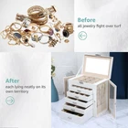 Store New Arrivals Add to Favorite View Feedback Contact Jewelry Box for Women, 6 Layer Lockable Large Jewelry Holder Organizer with 5 Drawers for Jewelry Storage, Big Jewelry Box for Womens’ Christmas Gift (Clear White) Description Item model number AG61024JB Style Modern Country of Origin China Batteries Included? No Jewelry Storage Type Jewelry Box Batteries Required? No Finish Polished Special Feature Mirror Product Dimensions 10"D x 8"W x 9"H Material Leather Number of Drawers 5 Finish Type Polished Included Components jewelry box Closure Type Key Lock Item Weight 6.63 pounds Occasion Christmas Special Features Mirror Target Audience Women Girl Part Number AG61024JB Mounting Type Table Top Color Clear White Shape Rectangular Recommended Uses For Product Necklace, Bracelet, Ring, Earring Inner Material Flannelette Multi-functional Jewelry Holder Organizer: The first layer on jewelry box with satisfy all your daily makeup needs. It with 6 earrings grids for stud earrings,brooches, Christmas charms. And it has 14 ring lines for ring holder, and 1 big mirror. Long Necklace Organizer: With excellent craftsmanship, this jewelry organizer will surprise you with its superior quality. With 16 necklace hooks on 2 jewelry organizer, you can hanging 16 necklaces in it. Makeup Organizer: The bottom drawer is really a huge drawer for your big stuffs, even for you cosmetics. With 5 drawers and 1 layer, you can take it as your makeup and jewelry box. All your daily storage needs will be take in it. Space and Time Saving for Makeup Table: With our 6 layer jewelry box, all your jewelry will be in good order and easy to reach. From then on, you have a bright dresser that saves space and makes your room look neater and more elegant. In addition, our jewelry travel boxes are designed to categorize your jewelry at a glance, shortening search time. Ideal Jewelry Gift Box : This PU leather jewelry box looks elegant and thoughtful. It is a perfect gifts for yourself, your friends, your wife or your mother for birthdays, Christmas, Valentine's Day, Mother's Day and anniversaries. This jewelry holder can be used not only as a girl's jewelry box, ring storage box, necklace storage box, earrings storage box, but also as a gift box for bracelets. 6 Layer Jewelry box for Women,The capacity of this 6-layer women's jewelry storage box is very large,First of all, he has 6 layers, each layer can store different jewelry, clearly distinguish your jewelry, and it is very clear and convenient when wearing,There is also a mirror at the top of the first layer, so that we can put on makeup and jewelry,his 6-layer jewelry storage box is particularly powerful, there are a number of different storage areas, such as the necklace area on both sides can accommodate 16 necklaces, there are 5 layers of drawers, the size of the drawer is also distinguished, the big drawer is suitable for storing everyone's daily necessities, large jewelry or sunglasses, etc., 4 layers of smaller drawers can store earrings, bracelets, rings, necklaces and so on.The material of the 6-layer jewelry box is made of PU leather, flannelette, hardware and MDF wood, which is very strong! It is suitable for friends, mothers, grandmothers or girlfriends who have a lot of jewelry during the holidays。 ABOUT US We offer the best prices around on high quality products. Our E-store includes media such as books, movies, music and games while offering electronics, toys, sporting apparel, clothing, tools, general home, garden items and more. SHIPPING We are always working hard to ensure your package arrives as soon as possible. Please understand that some factors like weather, high postal traffic, and the performance of shipping companies are outside of our control. We offer free shipping to the lower 48 states and ship within 2 business days of payment, usually sooner. We do not accept P.O. Boxes. Please provide a physical address. For shipping outside of the continental USA, we only use eBay's Global Shipping Program.The item is shipped to KY and then sent to the rest of the world. International customers are responsible for all duties and taxes. Continue to check out in order to calculate costs for shipping the item to your country. Messages regarding eBay's Global Shipping Program MUST be directed at eBay EXCLUSIVELY. RETURNS We offer a 30-Day Return Policy on items which you are not completely satisfied with. You have the option for a full-refund or an exchange of the item. No returns are available on items shipped outside of the USA. PAYMENT We accept PayPal. CONTACT US This page content is yet to come Please ad us to your favorite seller and visit again later Thank You CUSTOMER SATISFACTION We try our very best to make sure every customer is completely satisfied. If there's a problem, message us! We're happy to help.