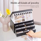 Return Policy Fast Delivery Trusted seller Jewelry Box for Women Girls, 4-Layer Large Jewelry Organizer Box with Glass Lid, Valentines Gift Jewelry Holder Organizer Jewelry Storage Case for Earrings Bracelet Necklace Rings -Black Product Description ✅ [Space Saving] 10.6”L x 6.3”D x 6.3”H(27 x 16 x 16 cm). With 3 Drawers and 1 display board, find all jewelry in one place quickly and easy to access. Put on the dresser, nightstand, bathroom counter, or vanity, saving space on the countertop. ✅ [Chic Folding Display Board Design & Glass Top]Top layer design as a display board to organize earrings and necklaces. Finding your jewelry at a glance through a glass lid, getting your daily match dressing quickly, and keeping your jewelry from dust. ✅ [Find All Jewelry in one Place] Designed with 16 varying size compartments, classify jewelry better like rings, earrings, necklaces, bracelets, and watches. No more missing pieces, messy and damaged, knots and tangles. ✅ [Stylish and Durable] Coated of wear-resistant and non-deformable PU leather, waterproof and easy to clean. Soft velvet inner lining protects your jewelry from scratches and damage, providing all-around protection. ✅ [Ideal Jewelry Gift Box]Give it on Mother's Day, Valentine's Day, Thanksgiving, Christmas, birthday, and anniversary, to surprise your mother, wife, girlfriend, daughter, or friend. Or, why not treat yourself? You deserve it! Shipping Returns Payment Shipping Shipping is FREE to all addresses other than APO/PO boxes in the lower 48 states. All our stock ships from US-based warehouses. Shipped via USPS or UPS (depending on location and package weight) Unless stated otherwise, all orders will ship within 24-72 hours of your payment being processed. Check our feedback to see the great reviews of FAST shipping we offer. Returns Seller does not accept returns Payment We currently accept payment via eBay managed payments only. Once payment is cleared, we will dispatch your shipment within 1-3 business days. Please refer to the "Shipping" tab for more information regarding shipping speed to your destination.