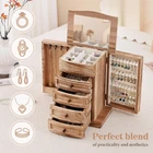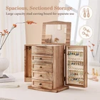 Jewelry Box for Women,Wooden Jewelry Organizers and Storage with Mirror & Drawers,Large Jewelry Box for Necklace Ring Bracelet Earring Organizer for Women Gifts(Carbonized Brown) Product Details Color: Carbonized Brown Brand: Poyilooo Material: Wood Style: Vintage Special Feature: Mirror Recommended Uses For Product: Necklace, Earring Product Dimensions: 6.42"D x 8.66"W x 11.42"H Target Audience: Women, Girls Shape: Square Occasion: Mother's Day, New Year, Christmas, Birthday, Valentine's Day Color: Carbonized Brown Brand: Poyilooo Material: Wood Style: Vintage Special Feature: Mirror Recommended Uses For Product: Necklace, Earring Product Dimensions: 6.42"D x 8.66"W x 11.42"H Target Audience: Women, Girls Shape: Square Occasion: Mother's Day, New Year, Christmas, Birthday, Valentine's Day Mounting Type: Floor Standing Finish Type: Rustic Closure Type: Drawer Number of Drawers: 4 Number of Compartments: 12 Jewelry Storage Type: Jewelry Box Number of Items: 1 Manufacturer: Poyilooo Item Weight: 4.11 pounds Country of Origin: China Item model number: YMJR1001 Finish: Rustic Special Features: Mirror Included Components: Drawers Batteries Included?: No Batteries Required?: No Date First Available: September 22, 2024 Practical Jewelry Box Tired of misplacing or tangling your jewels? Poyilooo jewelry box offers a thoughtful solution to keep your jewelry organizers and storage. With its side doors storage room and 5 layer drawers, it provides designated storage for earrings, bangles, rings, and other jewelry. The top layer has compartments for the rings, pins and brooches to store different jewelry Have 4 drawers to store such as bangles, bracelets, watches, lipsticks, and other jewelry accessories Rustic Wooden Jewelry BoxThis wooden jewelry box is a awesome gift for the anyone who loves nature-inspired design and farmhouse style. Crafted from solid wood and finished in a rich, carbonized tone that highlights the natural grain, the piece boasts a rustic elegance that complements any bedroom or vanity. More than just storage, this jewelry box transforms your precious gems into a beautiful, eye-catching display Think Deeper, Design BetterOur wooden jewelry box not only provides ample storage and organizer, but also features a thoughtful built-in mirror on the lid. This allows you to easily view your reflection while accessorizing, saving time in your precious morning time Multi functional StructureWith two sides door for necklace and earring organizer, our wooden jewelry box goes beyond basic storage, keep your neacklace and earrings tangle and accessible. The left door includes four hooks perfect for hanging necklaces or bracelets. The right door with soft velvet lining for the earring organizer, 4 tiers holder boards to storage stud earring and earrings. This design provides a comprehensive solution to elegantly display and protect your entire jewelry assortment Perfect Gift for HerIdeal Size 8.66"x 6.42"x 11.42" for Gift. Poyilooo exquisite wooden jewelry organizer makes an exceptional gift for the special woman in your life as a Birthday, Mother's Day Christmas Gift, or so on. Crafted with meticulous attention to detail, a carbonized finish that beautifully showcases the natural wood grain. From the built-in full-size mirror to the well-organized compartments and hanging storage, every element has been thoughtfully considered to provide a comprehensive jewelry valet that will keep her collection pristine and on display