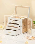 Store New Arrivals Add to Favorite View Feedback Contact Jewelry Box with 4 Drawers: Display Organizer for Earrings Necklaces - Gift for Girls Women (White) Description Item model number EL004-C079 Style Modern Number of Items 1 Closure Type Buckle Country of Origin China Batteries Included? No Jewelry Storage Type Jewelry Box Batteries Required? No Number of Compartments 4 Special Feature Glass Lid, Dustproof, Clear Window, Scratch Resistant, Decorative Product Dimensions 10.4"D x 6.1"W x 9.9"H Material Faux Leather Number of Drawers 4 Finish Type Polished Item Package Quantity 1 Item Weight 6.45 pounds Finish Polished Occasion Baptism, Wedding, Anniversary, Birthday, Valentine's Day Special Features Glass Lid, Dustproof, Clear Window, Scratch Resistant, Decorative Target Audience Women, Daughter, Children, Granddaughter, Girls Mounting Type Table Top Color White Inner Material Faux Leather Shape Rectangular Recommended Uses For Product Necklace, Bracelet, Ring, Watch, Earring, Bangle Included Components Jewelry Box, manual Size XXL Jewelry Storage Haven: This white faux leather jewelry box with a velvet lining is a five-tiered organizer with four drawers, offering ample storage for your earrings, necklaces, and bracelets. Drawers for Easy Access: The box features four golden wave-shaped drawer pulls, making it easy to access your jewelry collection stored within the velvet-lined compartments. Display Your Treasures: The top glass window display lets you showcase your favorite pieces while keeping them protected from dust and damage. Versatile Organizer for Everyday Use: Perfect for your home desk or bedroom vanity, this jewelry box is an elegant organizer for daily jewelry storage and display. Gift-Worthy Jewelry Box: Ideal as a gift for women of all ages, this jewelry box is a thoughtful present for birthdays, Christmas, Valentine’s Day, weddings, and anniversaries. Product Description The video showcases the product in use. The video guides you through product setup. The video compares multiple products. The video shows the product being unpacked. This jewelry box features 5 layers and 4 drawers, providing ample space for a variety of jewelry accessories such as earrings, studs, necklaces, chains, pendants, rings, watches, bracelets, eyeglasses, sunglasses, brooches, bangles, cufflinks, trinkets, etc. 1 Side Door Metal 2 Middle Metal 3 Faux Leather 4 Side Hook 5 Display Window Product Usage Occasions: 1、Suitable for personal daily use, it can be placed in the home, bedroom, dresser, vanity, desk, table, nightstand, cabinet, closet, or armoire. 2、It can also serve as a gift for various occasions such as birthdays, Christmas, Valentine’s Day, weddings, anniversaries, graduations, engagements, and can be given to friends, mothers,daughters, granddaughters, wife, girlfriends, mothers, friends, , nieces,sisters, etc. Enthralite Jewelry Box Add to Cart Add to Cart Add to Cart Add to Cart Add to Cart Add to Cart Customer Reviews 4.5 out of 5 stars 132 4.5 out of 5 stars 132 4.5 out of 5 stars 132 4.5 out of 5 stars 132 4.8 out of 5 stars 28 4.8 out of 5 stars 28 Price $59.99 $ 59 . 99 $29.99 $ 29 . 99 $39.99 $ 39 . 99 $24.99 $ 24 . 99 $29.99 $ 29 . 99 $29.99 $ 29 . 99 Color White White White White Black Gold Black Blue Layers 5 2 3 4 3 3 Drawers 4 1 2 3 2 2 Side Door ✔ ✘ ✘ ✔ ✘ ✘ Transparent Window ✔ ✔ ✔ ✔ ✘ ✘ ABOUT US We offer the best prices around on high quality products. Our E-store includes media such as books, movies, music and games while offering electronics, toys, sporting apparel, clothing, tools, general home, garden items and more. SHIPPING We are always working hard to ensure your package arrives as soon as possible. Please understand that some factors like weather, high postal traffic, and the performance of shipping companies are outside of our control. We offer free shipping to the lower 48 states and ship within 2 business days of payment, usually sooner. We do not accept P.O. Boxes. Please provide a physical address. For shipping outside of the continental USA, we only use eBay's Global Shipping Program.The item is shipped to KY and then sent to the rest of the world. International customers are responsible for all duties and taxes. Continue to check out in order to calculate costs for shipping the item to your country. Messages regarding eBay's Global Shipping Program MUST be directed at eBay EXCLUSIVELY. RETURNS We offer a 30-Day Return Policy on items which you are not completely satisfied with. You have the option for a full-refund or an exchange of the item. No returns are available on items shipped outside of the USA. PAYMENT We accept PayPal. CONTACT US This page content is yet to come Please ad us to your favorite seller and visit again later Thank You CUSTOMER SATISFACTION We try our very best to make sure every customer is completely satisfied. If there's a problem, message us! We're happy to help. WE ACCEPT Copyright © 2021 AutoDS. | All Rights Reserved
