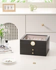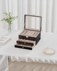 Jewelry Box with Glass Lid, 3-Layer Jewelry Organizer with 2 Drawers for Earring, Ring, Necklace, Bracelets, PU Leather Jewelry Chest Storage Case for Women&Girls Gift - Black Product Details Color: Black Brand: Messmenos MPN: PJO-WHITE UPC: Does not apply EAN: Does not apply Color: Black Brand: Messmenos Material: Leather, Velvet Style: Modern Special Feature: Space Saving, Dustproof, Anti-Slip, Scratch Resistant, Lock Recommended Uses For Product: Necklace, Bracelet, Ring, Watch, Earring, Bangle Product Dimensions: 7.87"D x 9.05"W x 5.31"H Target Audience: Girl friend, Women, Mother, Daughter, Wife Shape: Rectangular Occasion: Mother's Day, Christmas, New Home, Birthday, Valentine's Day Color: Black Brand: Messmenos Material: Leather, Velvet Style: Modern Special Feature: Space Saving, Dustproof, Anti-Slip, Scratch Resistant, Lock Recommended Uses For Product: Necklace, Bracelet, Ring, Watch, Earring, Bangle Product Dimensions: 7.87"D x 9.05"W x 5.31"H Target Audience: Girl friend, Women, Mother, Daughter, Wife Shape: Rectangular Occasion: Mother's Day, Christmas, New Home, Birthday, Valentine's Day Mounting Type: Table Top Inner Material: Velvet Closure Type: Key Lock Number of Drawers: 2 Item Weight: 3.52 Pounds Jewelry Storage Type: Jewelry Box Number of Items: 1 Manufacturer: Messmenos Part Number: PJO-WHITE Item Weight: 3.52 pounds Country of Origin: China Item model number: PJO-WHITE Item Package Quantity: 1 Special Features: Space Saving, Dustproof, Anti-Slip, Scratch Resistant, Lock Included Components: 2 Drawers, Jewelry Box Batteries Included?: No Batteries Required?: No Date First Available: October 16, 2024 Spacious Design - With dimensions of 9.05 x 7.87 x 5.43 inches, this jewelry box features three thoughtfully designed tiers(2 drawer), providing dedicated space for every type of jewelry. Keep your collection organized and easily accessible. Secure Locking System - Protect your valuable jewelry with a secure key lock. Enjoy peace of mind knowing that your cherished items are safe from theft. Elegant Display - The top of the jewelry storage case features a clear glass lid, allowing you to display and admire your beautiful pieces at a glance. Transform your collection into a stunning display that enhances room's decor. Premium Materials - Crafted from soft leather for an elegant exterior, The interior is lined with premium velvet, providing a soft, scratch-free environment for your jewelry. Durable metal fittings enhance the overall quality and provide lasting strength. Perfect Gift Choice - With its stylish appearance and practical design, this jewelry holder organizer is the perfect gift for women. Whether for a birthday, anniversary, or any special occasion, it combines beauty and utility, making it an excellent choice for someone special. Versatile Elegance - Perfect for any setting, this jewelry organizer box adds a touch of sophistication whether displayed on your bedroom vanity or in your walk-in closet. Elevate your space with a beautiful and functional storage solution.