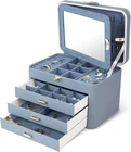 4-Layer Jewelry Storage Box: KAMIER jewelry box has 3 convenient drawers, and the top layer is equipped with a built-in mirror, behind which are hidden necklace hooks. Each layer has a dedicated area to store your precious jewelry, ensuring easy access and perfect storage. From earrings, rings, studs to necklaces, bracelets, watches, and even lipsticks, sunglasses, and perfumes, every precious item can find its own exclusive place in this exquisite jewelry organizer DIY Jewelry Organizers and Storage: The fashionable jewelry boxes comes with detachable compartments to create large capacity and different layouts, you can place your favorite jewelry or souvenirs as you like. It is not only a jewelry storage box on the dressing table, but also an ideal decoration for the cloakroom Good Handcraft and High Quality: Women large jewelry box is made of PU leather material, waterproof and dust-proof. Soft velvet lining protect your jewelry from scratches and damage. A durable and good-looking metal clasp prevents your jewelry from falling out 3-Layers Jewelry Organizers and Storage: This women jewelry boxes keeps all your jewelry neatly organized, with the top layer having dedicated slots for smaller jewelry and two drawers at the bottom for larger jewelry, providing ample storage space and ensuring easy access; This modern jewelry holder is beautiful whether displayed on a bedroom dressing table or in a closet, and can organize your pins, necklaces, rings, bracelets and other accessories GIFT FOR HER: Our exquisite jewelry box is the perfect Valentine's Day gift for women, mothers, wife and girlfriends. It is the best choice for any occasion such as Christmas, Mother's Day, birthdays, weddings and Valentine's Day. This travel jewelry organizer is a precious gift with amazing beauty, versatility and thoughtful storage. Surprise them with this unique gift Product Description