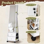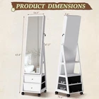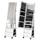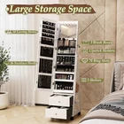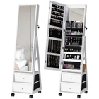 Return Policy Fast Delivery Trusted seller Jewelry Cabinet with Full Length Makeup Mirror, 4 Swivel Wheels, 2 Drawers, Lockable Cosmetics Storage Armoire, White Product Description 3 in 1 Design: Our jewelry mirror cabinet combines a jewelry cabinet, full-length mirror and storage shelves in one spacious unit. Not only can you easily select your jewelry while you are getting dressed, you can also touch up your makeup. Enhance your dressing experience. Makeup Mirror with LED Lights: This jewelry organizer boasts a makeup mirror with LED lights. When you open the cabinet door, the LED lights will automatically light up. Large Organization Capacity: Built-in 50 earring stud holes, 78 ring slots, 36 necklace hooks, lipstick holders, 3 shelves, 3 brush boxes, 2 large drawers and 2 storage shelves on the back to keep your various favorite stuff organized. Swivel Wheels: The jewelry cabinet is equipped with 4 swivel wheels, so you can easily move it to your desired position, as well as help you easily find the essentials, and provide you with the right place to look into the mirror. Lockable Design: Our jewelry armoire features a lockable design with 2 keys to protect your valuables, and a soft lining to prevent scratches on your beloved jewelry. Shipping Returns Payment Shipping Shipping is FREE to all addresses other than APO/PO boxes in the lower 48 states. All our stock ships from US-based warehouses. Shipped via USPS or UPS (depending on location and package weight) Unless stated otherwise, all orders will ship within 24-72 hours of your payment being processed. Check our feedback to see the great reviews of FAST shipping we offer. Returns Seller does not accept returns Payment We currently accept payment via eBay managed payments only. Once payment is cleared, we will dispatch your shipment within 1-3 business days. Please refer to the "Shipping" tab for more information regarding shipping speed to your destination.