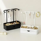 Jewelry Organizer Stand, Necklaces Holder with Wooden Tray and Drawer, Double Jewelry Display Rack Jewelry Storage Hooks for Bracelets, Earrings, Ring, Keys, Watches (Black) Product Details Color: Black Brand: BlayaAdd MPN: SC-SSJ UPC: 753584067791 EAN: 0753584067791 Color: Black Brand: BlayaAdd Style: Modern Special Feature: Portable Product Dimensions: 10.2"D x 20.1"W x 23"H Shape: T-Shape Occasion: Birthday UPC Manufacturer: BlayaAdd Color: Black Brand: BlayaAdd Style: Modern Special Feature: Portable Product Dimensions: 10.2"D x 20.1"W x 23"H Shape: T-Shape Occasion: Birthday UPC: 753584067791 Manufacturer: BlayaAdd Part Number: SC-SSJ Item Weight: 12.3 ounces Country of Origin: China Item model number: SC-SSJ Special Features: Portable Included Components: 1 * Jewelry Organizer Stand Date First Available: September 30, 2024 Jewelry Organizer StandOverall size is 20.1 x 10.2 x 23cm/7.9 x 3.9 x 9inch, with a wooden tray, a drawer and 5 hooks to show your jewelry. It is waterproof and scratch-resistant, can be removed for easy cleaning. Hanging DesignThe jewelry storage rack adopts top hanging and bottom tray and drawer designs for partitioned storage. Hanging storage, jewelry does not get tangled. The ends of the hanging arms have anti-slip beads so items will not slip off easily. Save SpaceThe hook above can hang your necklace, bracelet and earrings, the wooden tray and drawer below can put ring, watches, hair accessory etc. Your jewelry will be organized and won't have to search through cluttered boxes. Anti-slipIts bottom wooden tray increases the bearing capacity of the jewelry stand, making it more stable. Its bottom features foot pads, which are effectively anti-slip and prevent desk wear. Widely UsedIt is widely used, suitable for home, dressing table, bedside table, counter placement, hanging and storage earrings, necklaces, bracelets, watches, hair ties, keys, pendants and other jewelry, simple and practical. Features: 1. Made of premium quality materials, this jewelry display Holder is durable and easy to clean. 2. Our jewelry stand features a tray, a drawer and 5 hooks, providing a sleek display for your necklaces, bracelets, earrings, rings, and watches. 3. Its multi-functional design makes it a perfect gift for girlfriends, mothers, or anyone who loves jewelry. Specification: Material: ABS + Wood board Color: White, Black Size: 20.1 x 10.2 x 23cm/7.9 x 3.9 x 9 inches Package Include: 1 Jewelry Organizer Stand Notes: 1. Due to the light and screen difference, the item's color may be slightly different from the pictures. 2. Please allow 0.5-2 cm differences due to manual measurement.