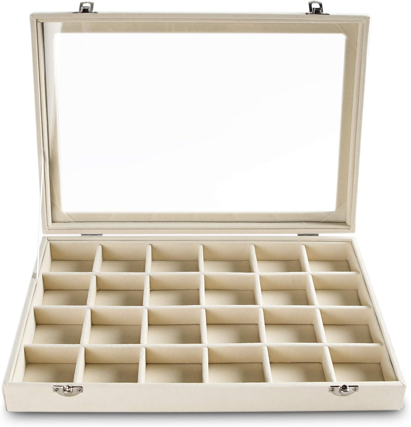 Store New Arrivals Add to Favorite View Feedback Contact Jewelry Organizer Tray with Clear Lid 24 Grid Velvet Drawer Insert Jewelry Storage Box with Transparent Glass Lid Jewelry Display Case with Lock Gifts for Girls Women (Beige, 24 Grid) Description Style Modern Number of Items 1 Country of Origin China Batteries Included? No Jewelry Storage Type Jewelry Tray Batteries Required? No Number of Compartments 24 Special Feature Jewelry Organizer Product Dimensions 9.5"D x 13.8"W x 2"H Material Wood Composite Number of Drawers 24 Finish Type Polished Closure Type Lock Item Weight 2.2 pounds Finish Polished Occasion Memorial Day Special Features Jewelry Organizer Target Audience Women Part Number 24 Grid Beige Mounting Type Table Top Color Beige Inner Material velvet Shape Rectangular Recommended Uses For Product Earring, Ring, Necklace, Bracelet, Brooch Size 24 Grid Number Of Pieces 1 High Quality Material - This jewelry tray is made of high quality solid wood composite.These wood are covered by soft velvet and you will feel great to the touch and it looks elegant. This is the reason our jewelry tray can protect your jewelries and accessories better 24 Grids For Organize - This jewelry tray has 24 Grids which covered by very softy velvet. Each grids' size is 2"* 2"* 3/4".It could be used to store rings,earrings, necklaces, bracelets,brooches,buttons,pins, watches and other valuables Safty and Convenience: This jewelry tray features a clear glass lid that enables clear display of your jewelries while keeping them from scratches,damage and dust. Complete with 2 integrated safety locks in the glass lid for adding security of effective protection on the loss of valuable goods Perfect gift: The size of the the Jewelry Organizer is 13.8"L x 9.5"W x 2"H. The modern style of the storage box allows it to blend seamlessly with any room.This makes a great gift for a mother, girlfriend , wife, daughter, colleague, friend or any other special female in your life Multifunction: The jewelry tray display is great for personal use at home like dresser or drawer inserts.This is also suitable perfect for a countertop jewelry display in stores or trade shows Product Description Are you tired of organizing a ton of your jewelry and taking time to find what you need from the mess! Come on with Frebeauty jewelry tray! Product Features Materials: Velvet Dimensions: 13.8"L x 9.5"W x 2"H Color: Black/Beige/Grey Weight: 2.2(lb) Organize Purpose:rings/earrings/Stud/brooches/cufflinks Note: There is a very small probability that the glass lid will break during transportation.If it is damaged during the shipping or if you are not satisfied with it,please contact with us and we will provide the best after-service for you. About Frebeauty When we created Frebeauty, we wanted our product to spotlight the person behind the fashion Craftsmanship: From choosing high quality material carefully to manufacturing products with advanced equipments and techniques, each detail shows the perfection and high quality insurance You will find how it is excellent! Perfect Drawer Insert Soft Velvet Lining Velvet Tray - Fully lined interior to make it stylish look and provide your jewelry better protection.Keep your jewelry smooth and complete. Sturdy Ribbon We use sturdy ribbon as an upgrade and improvement which allows you to open and close without worrying about the ribbon breaking. Large Capacity Large Capacity - This jewelry box can hold most of the jewelry in your daily life.Your jewelry will be protected and easy to observe and take. ABOUT US We offer the best prices around on high quality products. Our E-store includes media such as books, movies, music and games while offering electronics, toys, sporting apparel, clothing, tools, general home, garden items and more. SHIPPING We are always working hard to ensure your package arrives as soon as possible. Please understand that some factors like weather, high postal traffic, and the performance of shipping companies are outside of our control. We offer free shipping to the lower 48 states and ship within 2 business days of payment, usually sooner. We do not accept P.O. Boxes. Please provide a physical address. For shipping outside of the continental USA, we only use eBay's Global Shipping Program.The item is shipped to KY and then sent to the rest of the world. International customers are responsible for all duties and taxes. Continue to check out in order to calculate costs for shipping the item to your country. Messages regarding eBay's Global Shipping Program MUST be directed at eBay EXCLUSIVELY. RETURNS We offer a 30-Day Return Policy on items which you are not completely satisfied with. You have the option for a full-refund or an exchange of the item. No returns are available on items shipped outside of the USA. PAYMENT We accept PayPal. CONTACT US This page content is yet to come Please ad us to your favorite seller and visit again later Thank You CUSTOMER SATISFACTION We try our very best to make sure every customer is completely satisfied. If there's a problem, message us! We're happy to help. WE ACCEPT Copyright © 2021 AutoDS. | All Rights Reserved