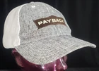 Jim Bryan Custom Caps, "PAYBACK". Gray Shimmer Nylon( or polyester we are not sure what the correct material is. Feels like a backpack ) Cap Strap back Hat. OSFM. Good pre-owned condition. No rips, holes, tears, or stains. Minor imperfections and signs of use may be observed. Please see pictures for a full description of physical condition Hi and welcome to my store. I always strive to offer the highest quality vintage, new, used or unique items I can find. Much of my inventory has been previously used. I always try to find the most gently used items I can find but this does mean that minor imperfections may be present. I will always try and put these imperfections in the item description. Please use the pictures as a guide to the item's condition. Be aware that due to camera limitations minor differences in color can occur. If you ever have any problems or issues with an item that you have purchased please do not hesitate to reach out to me so I can correct or address the situation. I always try and respond to or accommodate all questions about items I am selling. I will offer the fastest and safest shipping with care that I am able to. As a small reminder. I am a small one person business. I do my best to research all prices on the items I am selling. I always take condition into consideration when pricing. In most cases I welcome offers on merchandise. Please be considerate when sending offers. I have to compete with much larger organizations to stay in business. Thank you for your business and support. Have a great day I look forward to filling your order. Sincerely Coopadoopa