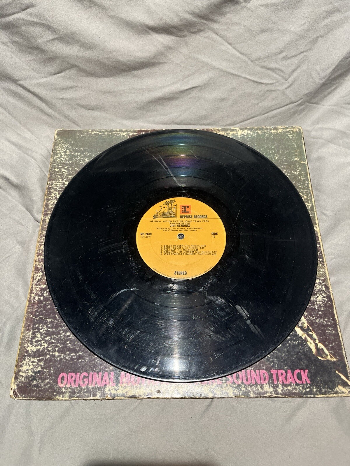 The product is a vinyl record of Jimi Hendrix's album "Rainbow Bridge," released in 1971 by Reprise Records. It is a 33 RPM LP in a cardboard sleeve, with a black vinyl material and a 12" record size. The album falls under the genres of Psychedelic Rock and Classic Rock, showcasing Hendrix's iconic style. The record is in very good condition, with excellent inlay and sleeve grading, making it a valuable addition to any music collector's library of iconic rock albums.