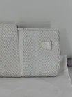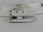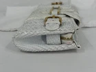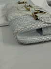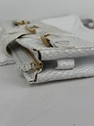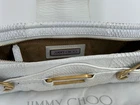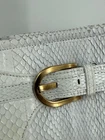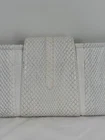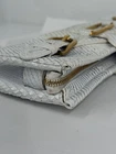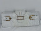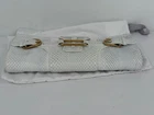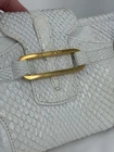 Jimmy Choo White Python Snakeskin Gold-Tone Tulita Clutch Bag Purse Excellent Pre-Owned Condition Comes with the Original Dustbag Solid white Python snakeskin Gold-tone hardware Buckled detail on front Zipper closure 12" x 5" x 2" Please note there are a couple of tiny spots near the zipper, you can see this in the photos