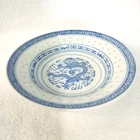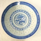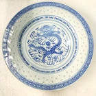Jingdezhen Ware: Chinese Dragon eyes Rice Grain Pattern No chips or cracks Blue may have a slight variance in color Cx78 discontinued collection