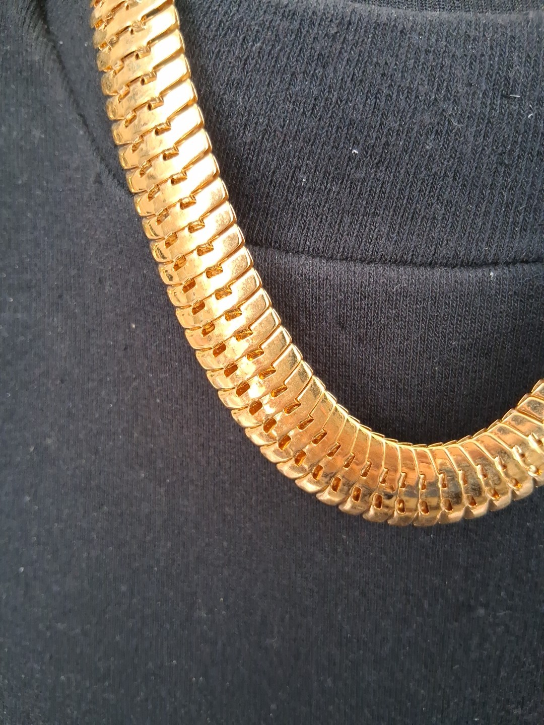 The Joan Rivers-STYLE 14" Golden-Tone Herringbone "Tubogas" Snake Chain Necklace is a chic and stylish accessory that complements any outfit. With a fold-over closure, this necklace is easy to put on and take off. The snake chain design adds a touch of elegance, while the golden tone color gives it a luxurious look. Perfect for those who appreciate beauty and fashion, this necklace is a must-have addition to any jewelry collection. *Any wear, oxidation or discoloration (for example near/on clasps) is comparable with the age and pre-loved nature of the pieces I list. **Items may need a gentle wipe down. ***I price fairly based on market comparables when available. ****Please pay promptly. I hold for 2 days unless otherwise arranged, but not beyond 1 week. *****I'd like this experience to be fun. 💕Good luck! Live Generously 💕