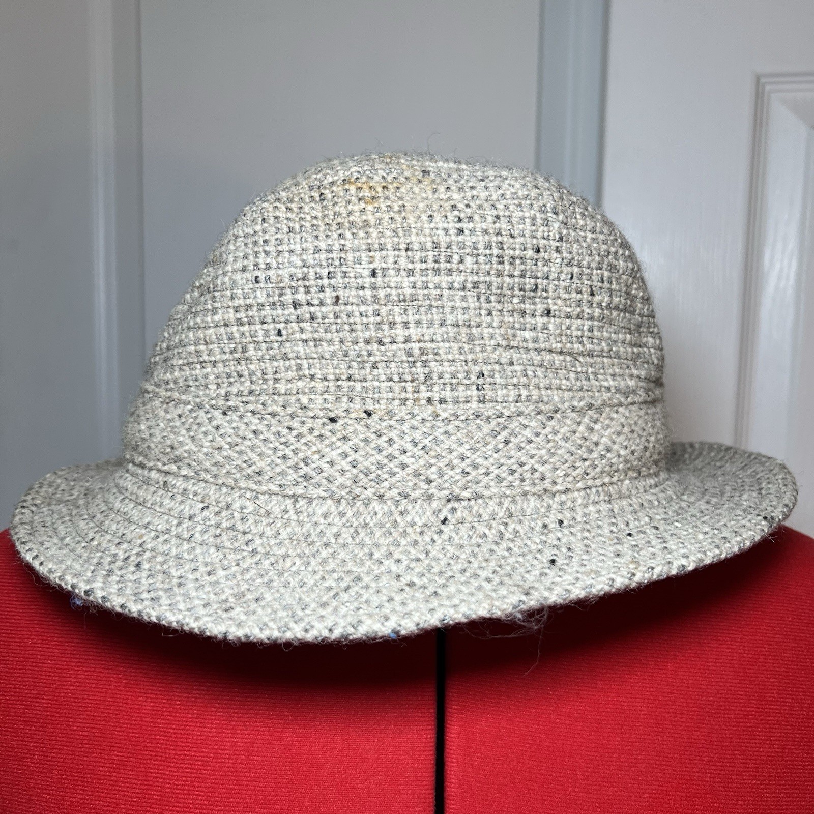 John Molloy Made In Ireland Donegal Tweed, Pure New Wool, Woolmark Fedora Hat, Size 7 Pre-owned. Overall the hat is in excellent condition. There is a mark on the top of the hat, see photos.