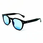 Depp 1 Frame in glossy black oval style acetate. Lenses created in the lab in CR39 color blue intensity 30%. Dimensions: Front 140mm Rod 145mm 49mm lenses Bridge 24mm Included in the price you will receive soft case and cloth. Payments: Paypal - Bank Transfer Shipping: Poste Italiane - SDA francescopisacane.it