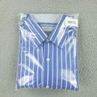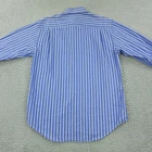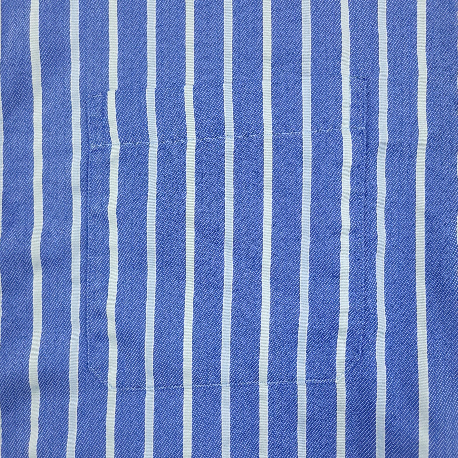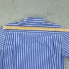 Brand: Johnston & Murphy Style: Mens long sleeve button-front dress shirt in a tailored fit with vertical blue and white stripes and subtle herringbone texture. Color: Blue with white stripe pattern; contrast inner collar and cuffs feature a light blue diamond check design. Material Cotton Size on tag: Large (L) Details: Point collar, front button closure, single chest pocket, adjustable button cuffs, curved shirttail hem with small "J&M" embroidery near the front hem. Made in Indonesia. Washed and dried with Fragrance Free Detergent & Dryer Sheets. Measurements are included in the photos, compare measurements with your item to ensure proper fit. (Measurements are done with the item lying flat). I ship next business day and all items include tracking. Items are added daily to my store Visit My Store Buy More & Save! Combined shipping for US customers - $1.99 for each additional item (Add items to shopping cart and discounts will automatically calculate during checkout)