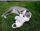 Tug-a-Mals' easy-to-grip handles encourages tug of war play between pups, and levels the playing field for humans. An internal squeaker thrills four-legged friends with a surprising element of realism. Soft to the touch, but hardcore in the squeaky department, Tug-A-Mal offer the best squeak on the block. When playtime is over, Tug-a-Mals are great for curling up to for a little doggie nap. Available in four sizes and multiple shapes, Tug-A-Mals are ideal for indoor or outdoor play. Patented: U.S. Patent No. 8,881,685 / 9,295,232 / 9,681,643. Proudly offered by . is proud to support organizations nationwide that provide dog toys to dogs in shelters- we believe all dogs should be Jolly (even while waiting for their forever homes). The Large Tug-A-Mal features a 5 inch squeaker and is ideal for dogs weighing between 20 and 60 pounds Easy-to-grip handles encourage tug of war play between pups, and levels the playing field for humans Soft to the touch, the Tug-A-Mal offers hardcore squeakiness with the best squeaker on the block Dual handle design makes the Tug-A-Mal perfect for games of tug-of war, indoors or out. When playtime is over, these soft toys are ideal for snuggling during a little doggie nap Patented: U.S. Patent No. 8,881,685 / 9,295,232 / 9,681,643 Age range description: all life stages