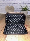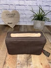 Jon Hart Espresso Coated Canvas Travel Kit Unused new with tags - is a little dusty Has patch “Valero benefit for children” Our very popular travel kit is great for packing your essentials and so much more. Often used as a tech bag, first aid bag, and even a tackle kit cover, it has endless uses. Best of all, it's designed to fit perfectly inside the Large Square Duffel end pockets. Coated canvas with Natural Leather Trim Fully lined in black for a durable, easy to clean interior Adjustable Natural Leather handle Fully zippered closure with silver hardware Zippered pocket inside Dimensions (inches): 8h x 12.5w x 4.25d