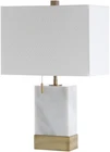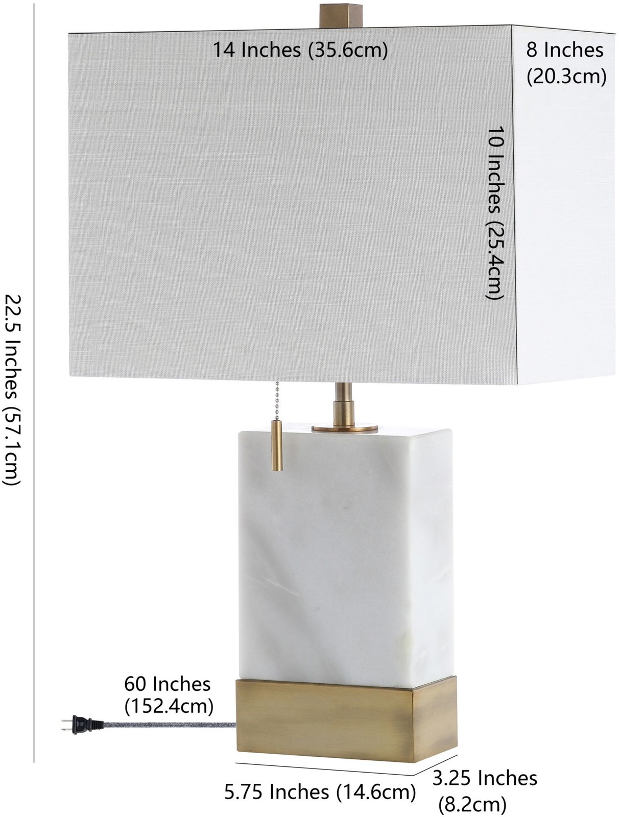 This lamp is a stylish and functional addition to any room! The white and brass gold finish is sleek and modern, while the included LED bulb provides warm, energy-efficient lighting. The marble and iron construction feels sturdy and high-quality, perfect for a nightstand or desk. Easy to operate with the on/off switch, and the cotton shade diffuses light beautifully. Worth every penny!
