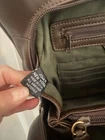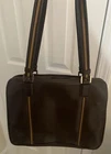 The Jones New York Vintage Handbag is a medium-sized rectangular satchel/top handle bag with a classic brown exterior and gold hardware accents. It features a zip closure, inner pockets, and double handles for easy carrying. This stylish handbag is perfect for travel or casual occasions, adding a touch of vintage charm to any outfit. Made from man-made materials, it is designed for women who appreciate timeless elegance and practicality in their accessories.