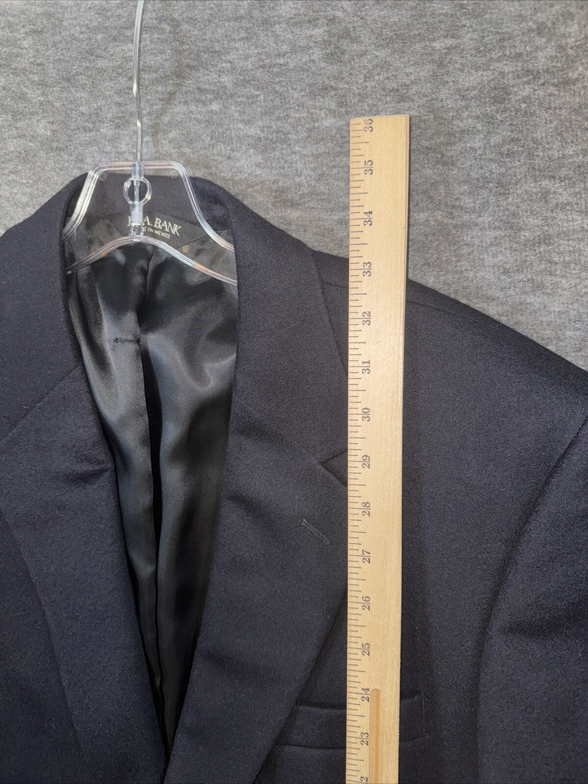 Elevate your style game with this Jos A Bank blazer sport coat jacket in navy blue. Made of 100% cashmere, this high-quality piece is perfect for fall, winter, and spring seasons. The jacket features a single-breasted cut with a notch lapel style and a two-button front button style. The solid pattern and single-vented jacket vent style make it a classic and versatile addition to your wardrobe. This designer piece is perfect for men who are looking for a regular fit blazer that is both stylish and comfortable. The jacket is made in Italy and comes in size 42. The lining material is cupro, and the fabric type is tweed. This blazer is perfect for a variety of occasions, including business meetings, formal events, and casual outings.