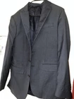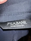 Jos a bank traveler slim fit suit jacket. It is navy in color, has two front exterior pockets that are not functional but for looks. There are multiple pockets on the inside. Made in Egypt. Has no rips, tears or stains. It is great condition! Fabric: 100% wool Lining: 100% polyester 40 long/ 34 waist