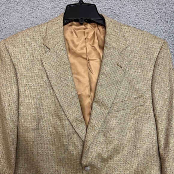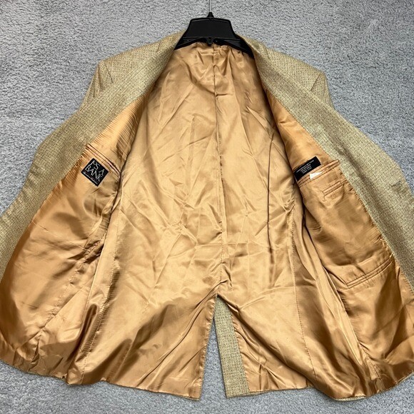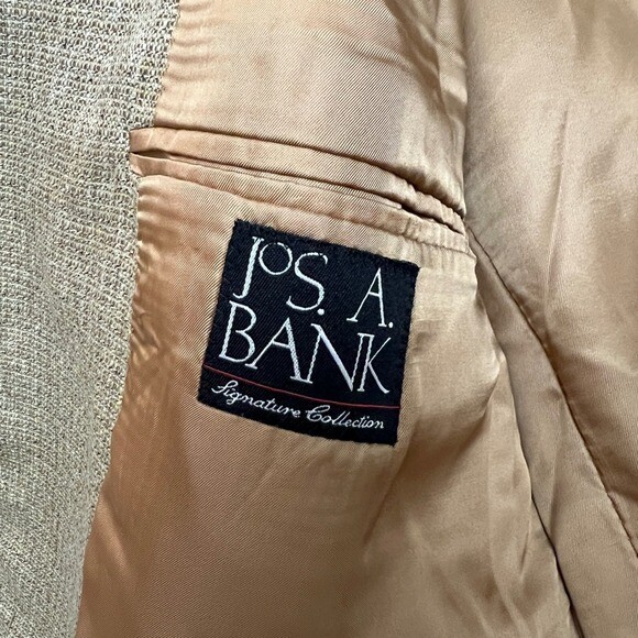 Up for sale is a Jos A Bank Sport Coat Mens 43R Tan Silk Blazer Woven Casual Formal Office This pre-owned is in excellent condition and ready for its next adventure and is perfect for everyday wear. Measurements: Please see photos above for all measurements I will ship this item out EVERY DAY so EXPECT a QUICK delivery! Please feel free to ask any questions you may have I answer most questions instantly!