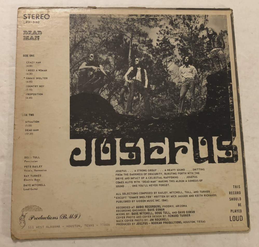 The product is a vintage 1970 psychedelic rock vinyl LP by Josefus, titled "Dead Man," released under Hookah Records. This 12" record, graded as Good (G), features original cover artwork and stereo sound. The black vinyl LP, with a catalog number of LP H-330, showcases the band's psychedelic rock style and is a must-have for collectors of 1970s music from the United States. Sale conditions for all new/old stock vintage (20+ years) still-sealed record albums only *Please read the condition description carefully. *Visual grading only, under a clear 60 watts light bulb, to the best of my ability. *No returns accepted on all sealed albums if opened or shrinkwrap removed. *All returns must be in same condition when received. *All sealed albums are listed and sold as collectible, investment, and/or future PSA grading, and not as a playing copy. *For playing and enjoyment, I recommend an excellent to near mint copy. *I will list only albums that is in decent condition and playable for listening. *Original or replacement paper inner sleeve. *Records with no warping. *Please note: (New and sealed only) Album cover with minor creases, and flaws such as dented and/or creases corners, shrink-wrap with partial tears, and ring wear are possible. *If you have any questions or concerns before buying, feel free to contact me. Thank you. Vintage 70s Hookah Records LP H-330 Stereo, 1st US Pressing Josefus "Dead Man" (1970) LP Condition: Pre-owned. *Record: Good to Good plus. *Cover: Poor to Worn.