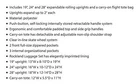 Description This beautiful deluxe 4-piece expandable luggage set is manufactured with a patented heavy duty EVA-molded hi-count fabric. This set is perfect for the serious and experienced traveler! Manufactured with the very best heavy duty polyester and PVC backing, this luggage set is designed for the traveler on the go and comes with three expandable uprights and a flight tote bag. It comes packed with features including: an inside retractable handle, EZ-Roll in-line skate wheels, back zippered secured pockets, top and side comfort grip handle, stability bars at the bottom to avoid tilting, and locks & keys. Upright features include: Clear in-line skate wheel system for smooth ride Push-button self-locking internally stored retractable handle system Ergonomic and comfortable padded top and side grip handles Two front full size zipper-secured pockets Three internal organizational pockets for all your traveling needs Each upright's interior is fully lined with a durable and elegantly imprinted lining Elegant silver pewter heavy duty industrial hardware Carry-On Flight Tote Bag features include: Elegantly imprinted full interior lining Detachable and adjustable non-slip shoulder strap Spacious main compartment Maximum strength industrial hardware 19-inch Carry-on Upright: 20 inches high x 12. 5 inches wide x 7. 5 inches expandable to 10 inches deep (with wheels). 6 lbs. 24-inch Upright: 24 inches high x 16 inches wide x 10 inches expandable to 12 inches deep. 8 lbs. 28-inch Upright: 28 inches high x 18 inches wide x 12 inches expandable to 14 inches deep. 9 lbs. Carry-On Flight Tote Bag: 14 inches wide x 11 inches high x 5 inches deep – 1 lb. Carry-on Upright: 20"x 12. 5"x 7. 5" (with wheels).Number of wheels:2 24-inch Upright: 24"x16"x10" 28-inch Upright: 28"x18"x12" Tote: 14"x11"x5" Two large front pockets Skate wheels Full lining Expandable