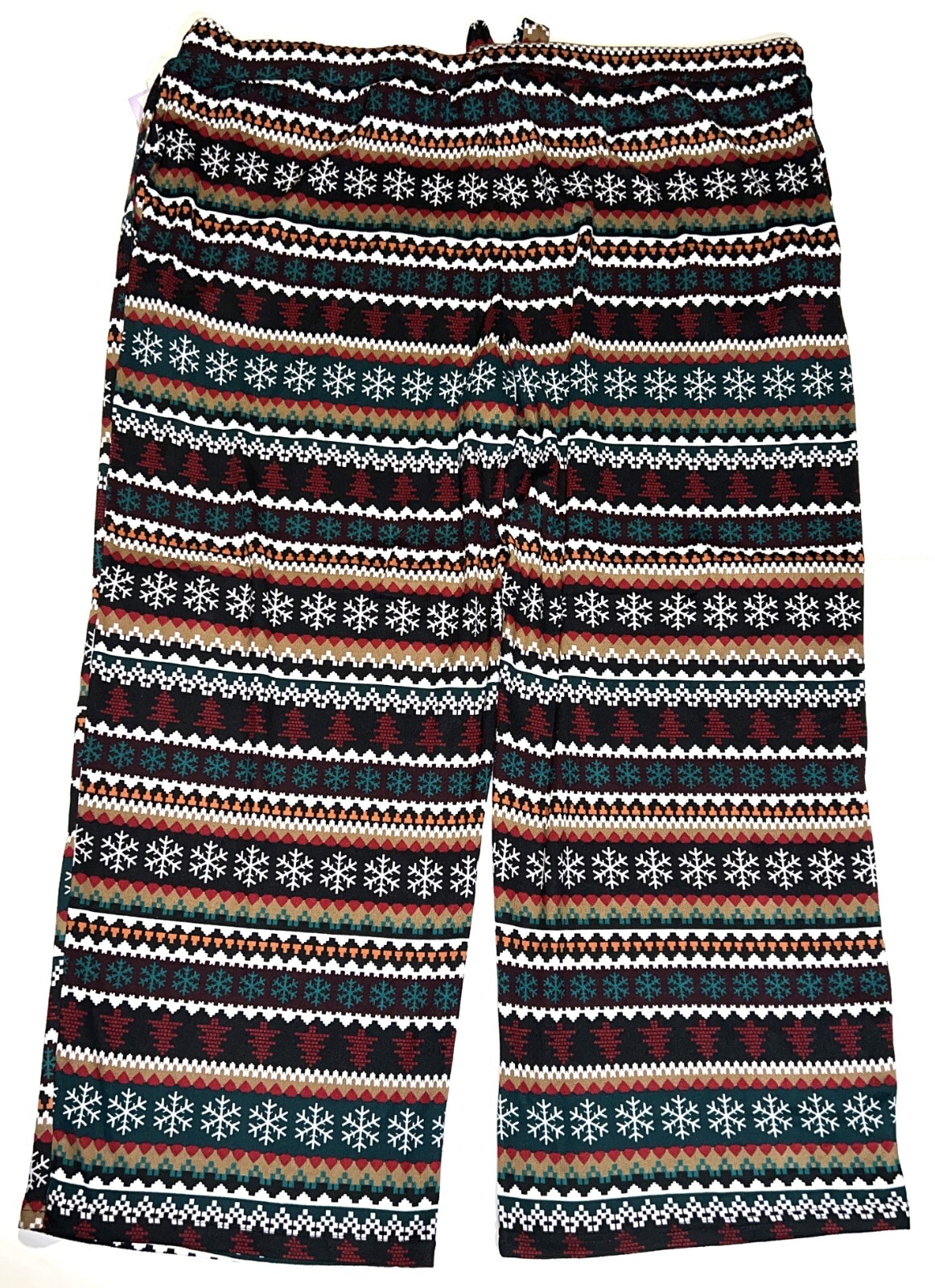 Brand NEW Without Tags Joyspun Fairisle Snowflake Tree Hacci Knit Wide Leg Drawstring Pull-On Pajama Sleep Pants ~ Women's Size 3X (22W-24W) Measures: 22.5" flat across the front of the waist unstretched, 28.5" at the inseam, and 13" at the rise.