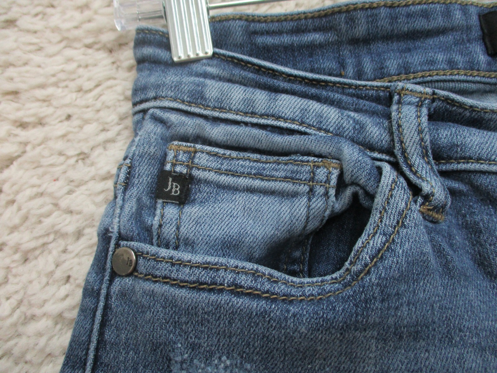 $ 52.8Elle Women's Med Blue Distressed Straight Leg Jeans with Studded Pockets Size 6 30x26.5