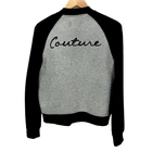 Juicy Couture Jacket Womens Large Gray Black Full Zip Logo Back + Pockets Cropped Very good condition, see all pictures for views. •Pit to pit: 20" •Shoulder to hem: 24" Ships out same day or next open postal day. Thank you for your purchase, we appreciate you!