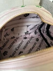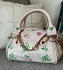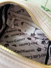 The Juicy Couture Retro Juicy Cherry Gelato Satchel Crossbody Bag in Retro Pink Multi is a medium-sized handbag with a vintage-inspired design. The bag features a zipper closure, pink handles/strap, and gold hardware accents. Made of velvet fabric with faux leather and terry cloth exterior materials, this crossbody bag has inner pockets and a detachable strap. The cherry gelato theme is reflected in the pattern and character details, making it a stylish and eye-catching accessory for women interested in retro fashion. Thank you, GBC!