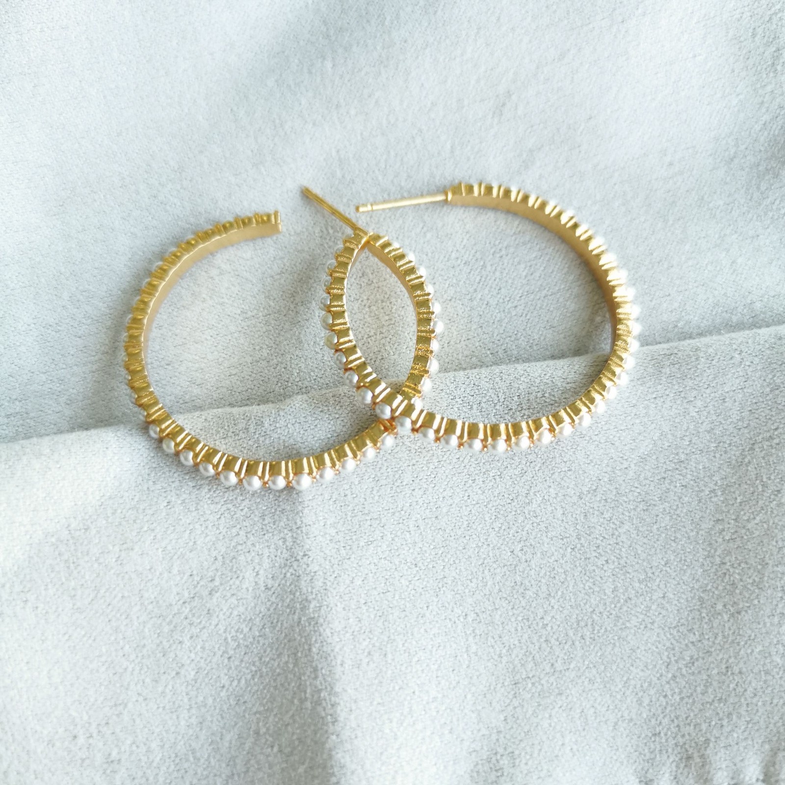 Without dust bag / card 1.25 inches 18K gold plate Pearl Delicate pearl-accented hoops.