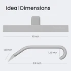 Keep your shower glass spotless and streak-free with this compact and elegant silicone shower squeegee. Its ergonomic design and sturdy construction make it a reliable tool for effortlessly wiping away soap scum, water drops and limescale after use. The straight blade fits closely to your shower doors, ensuring a thorough clean with minimal effort. Made from high-quality materials, this squeegee is built to last and maintain its pristine appearance. Enjoy a sparkling clean shower enclosure with this practical and efficient squeegee. Dimensions: 10 inches wide. Hangs Easily Anywhere, No Fixed Mount Needed: Eliminates additional accessories, all-one-piece silicone design with the large built-in hook makes it fit over most shower doors/walls, showerheads, caddies, door handles, towel bars, rods, sink edges, and other bathroom setups One Swipe Clean, Streak-Free Guarantee: Professional silicone blade material ensures glides smoothly to instantly remove steam, water drops, limescale, soap scum, and other liquid residues, leaving NO streaks behind Seamless Construction, No Crevice for Mold or Crack: Combined with a rigid internal core and silicone over-molding for long-lasting durability, its minimalist design is both functional and stylish Ergonomic Non-Slip Grip: A unique 145° angled design, stiff wide shape, balanced weight, grippy texture, and soft-touch silicone coating, all make the handle comfortable to hold even in the wettest conditions Multi-Purpose Squeegee: From shower glass to mirrors, tiles, countertops, and car windows, it is your all-in-one cleaning tool Product Measurement:L x W x H: 10" x 9" x 2.3", Blade Length 10", Blade Width 1.12" , Hook Diameter: 1.22".
