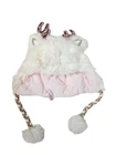 Justice White & Gold 3D Faux Fur Reindeer Trapper Hat Youth Girls P8 In like new condition Justice White & Gold 3D Faux Fur Reindeer Trapper Hat Youth Girls. Features fluffy and soft white and metallic gold faux fur trapper hat, 3D reindeer ears and pink glitter antlers, braided metallic trapper ties with white faux fur pom poms, fully fleece lined, ear flaps, adorable youth trapper hat. Youth girls hat one size fits most Fabric acrylic and polyester fleece This is a pre-owned item that may show signs of wear. In like new condition, no flaws.