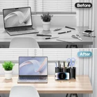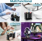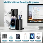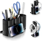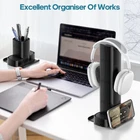 KDD Pen Holder with Headphone Hanger - 3-in-1 Pencil Black Product Details Specific Uses For Product: Stationery Material: Acrylonitrile Butadiene Styrene Special Feature: Detachable Color: Black Brand: KDD Finish Type: Polished Product Dimensions: 6.49"D x 5.7"W x 4"H Unit Count: 14.4 Ounce Manufacturer: KDD Item Weight: 14.4 ounces Material Type: Acrylonitrile Butadiene Styrene Specific Uses For Product: Stationery Material: Acrylonitrile Butadiene Styrene Special Feature: Detachable Color: Black Brand: KDD Finish Type: Polished Product Dimensions: 6.49"D x 5.7"W x 4"H Unit Count: 14.4 Ounce Manufacturer: KDD Mounting TypeNumber of Compartments: Tabletop Mount3 Multi-purpose Desktop Organizer- The additional retractable hook design allows you to hang three headphones at the same time. In addition to storing different types of headphones, this desk organizer accessory can also be used as a pen holder or to store desktop items such as remotes, and the slots on both sides of the base of the pencil desk holder can be used to hold a cell phone or a tablet, so your desktop stays neat and tidy. Detachable Headphone Hanger - This pen holder & headphone hanger has a modular design, all three pen holders are detachable, you can combine the three pen holders to use or as a headphones stand according to your desktop needs. Simple installation process and easy to remove, the flexible pen holder design solves your desktop clutter worries. Multi-Scenario Use - This headset organizers can not only be used to organize headphones/office supplies, but also can be used to organize makeup brushes or as a toothbrush holder. The headphone hanger with cable clip, and the universal hook can also organize your watch. You can put this multi-scene pen holder on your desk, office, gaming desktop, living room or bedroom for storage and organization. Stylish Appearance and Durable Material - The desktop organizer pen holder is made of high quality ABS material to make it reliable and durable, simple black fashionable appearance, enhance work efficiency and desktop aesthetics. To prevent slipping, the pen holder base comes with non-slip silicone pads. It is a perfect gift for friends, students and family. Large Capacity Pen Holder - KDD multifunctional pencil holders use a combination of 3 pen holders cup holders, allowing you to have a large capacity of storage space, and the three pen holders are partitioned for better categorization of storage, so that your desktop neat and orderly, stationery categorized and easy to access.