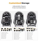 Dimensions: 17.3 x 11 x 7 inches. Capacity: 22 liters. This multifunctional rigid camera backpack is designed for different brands of DSLR/SLR/SLR/mirrorless cameras. Removable modular inserts as custom dividers for different cameras, flashes and lens. The back pocket is a laptop compartment that can store up to 15.6 inches of laptop. Fully open design: fully open front flap designed with hard case, which prevents your camera from hitting and scratching. Camera bag with 2 internal pockets for accessories that can store cables, SD cards, power bank. 1 hidden zippered pocket on the back for your phone, wallet and other small items you need to store. The tripod holder comes with 1 secure strap on one side of the bag. 1 pocket on the other side can store umbrella or water bottle. Front hard shell protection: this rigid camera backpack is made of EVA rigid cover, all in one piece, the padded foam layer can provide good cushioning and protection to your internal things against bumps and drops. Comprehensive protection for your camera and drone equipment. Easy-to-use design: Ergonomically breathable padded mesh back panel and shoulder strap (adjustable from 20 to 38.9 inches) are designed for comfortable carrying, distribute weight evenly and reduce the load on your shoulder. Elegant camera bag: the back belt makes it convenient during the trip. Our camera bags are perfect for travel and offer practical features for the photographer and camera enthusiasts. If you have any questions about the product, do not hesitate to contact us.