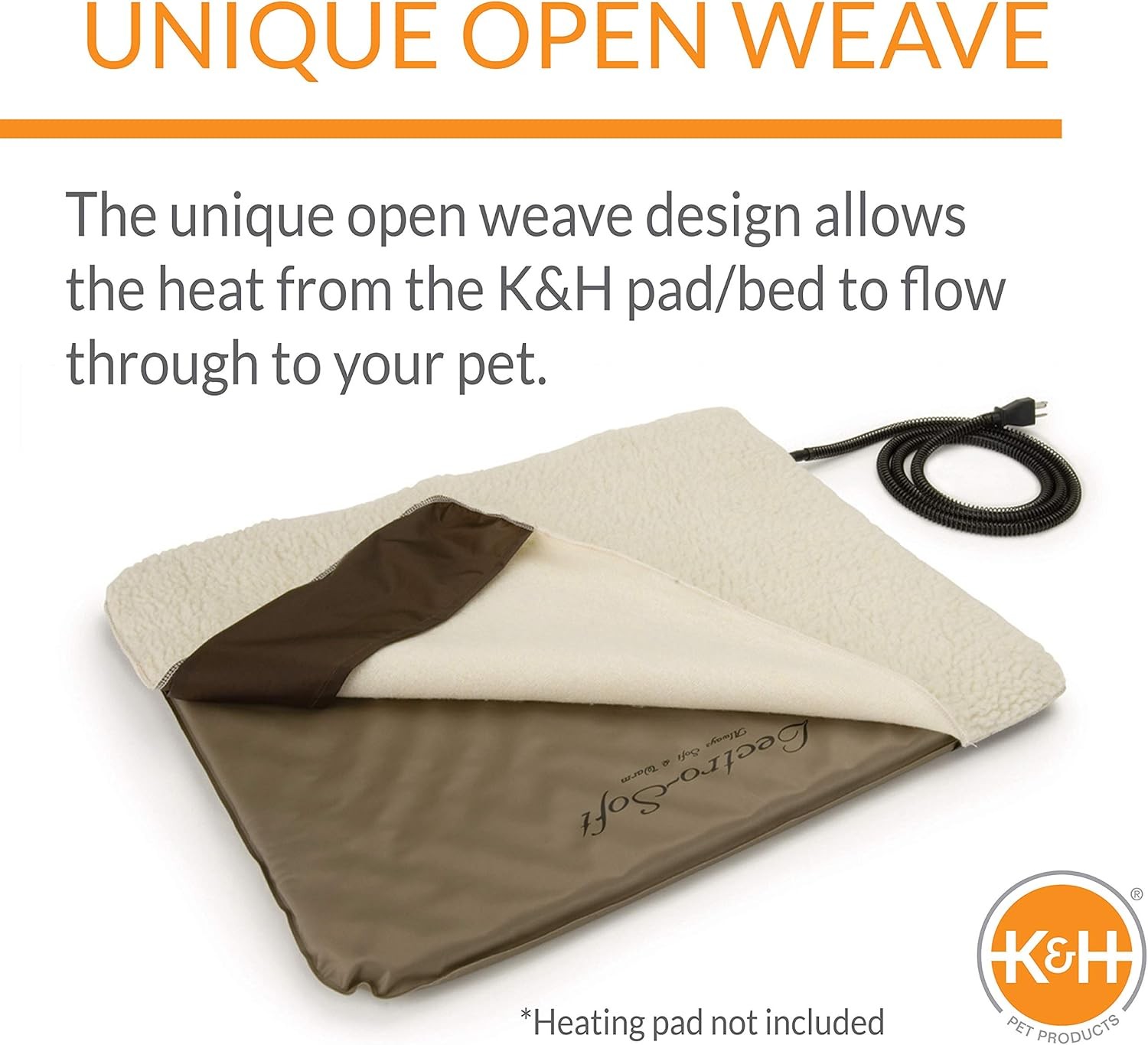 COVER ONLY: Our Lectro-Soft Replacement Cover is designed to fit like sized K&H Lectro-Soft Outdoor Heated Beds only (sold separately) SOFT & BREATHABLE: Cover's soft open-weave design lets heat radiate through to keep your pet cozy and warm COMFORT: Faux fleece provides additional softness and support; never cover your pad with materials other than this cover SIZING: Small size replacement pad cover measures 14 X 18 Inches and will fit the K&H Lectro-Soft Small (heated pad sold separately) MACHINE WASHABLE: This replacement cover is machine washable for easy care COLORADO BRAND YOU TRUST: Designed by K&H with over 25 years of experience in creating safe, innovative, quality products for pets, ensuring safe reliability and top-tier craftsmanship for pet parents; 1-year limited warranty The K&H Pet Products Lectro-Soft Replacement Cover is designed to fit like sized K&H Pet Products Lectro-Soft Outdoor Heated Beds (not included). The unique covers add softness and comfort to your Lectro-Soft Outdoor Heated Bed and should always be the only material used to cover the Lectro-Soft. The faux fleece material makes our popular heated pet bed even more luxurious and is sure to please any dog or cat. Covers are available in 3 sizes and remove easily for machine washing. Add a little extra comfort to your K&H heated cat bed or heated dog bed with this genuine K&H accessory. Designed by K&H with OVER 20 years of experience in creating safe, innovative, quality products for pets; one year limited warranty.