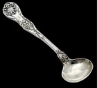 Presented is a Lovely, Antique KING GEORGE Master Salt Spoon Sterling Silver by GORHAM SILVER Designed 1894 Length: 3 5/8" Sterling silver with detailed shell and scroll designs Elegantly engraved with an "N" Please review the photos as they accurately depict the condition of the piece you will receive. * Marks on silver are reflections from photos. A lovely piece intricately designed with the underside just as detailed with shells and scrolls as the front of the spoon. Kings pattern works well with many silver patterns. King George pattern by Gorham Silver is a regal and elegant sterling silver flatware pattern. Carved scroll, shell and rococo designs make a bold statement on any dining table. Thanks for stopping by!