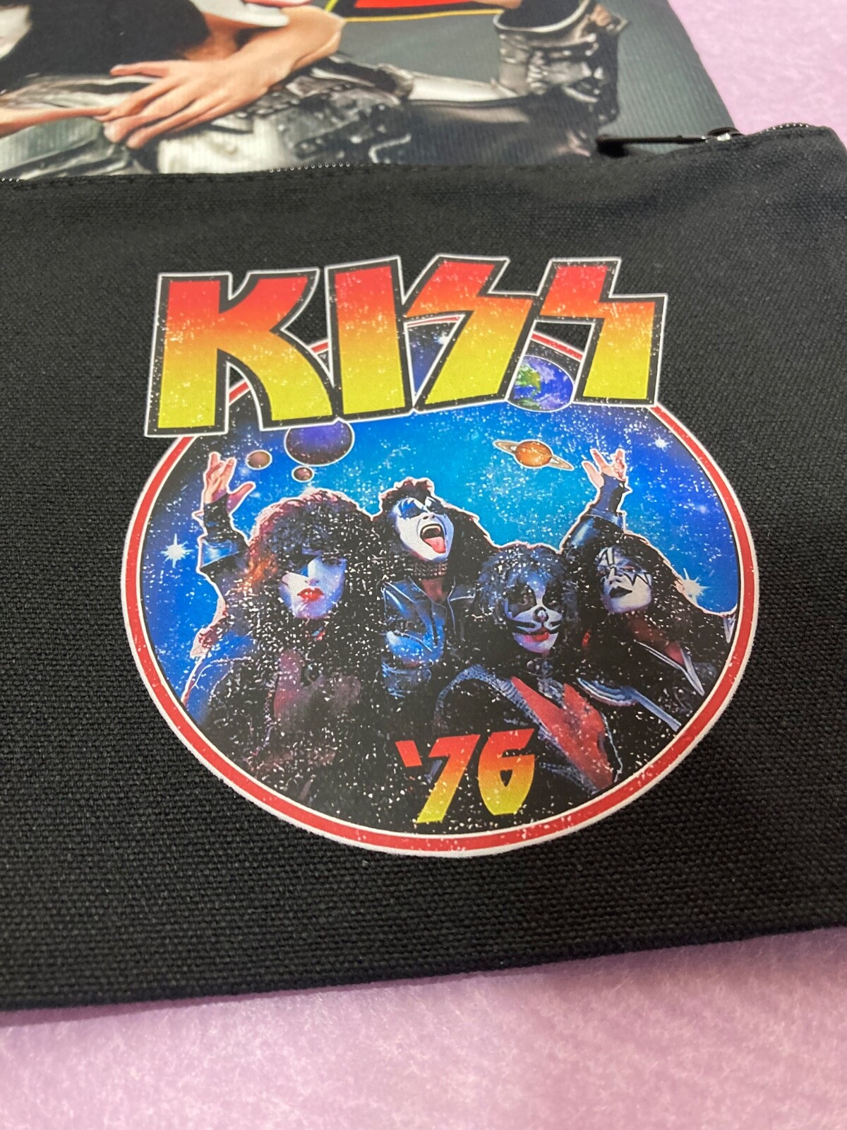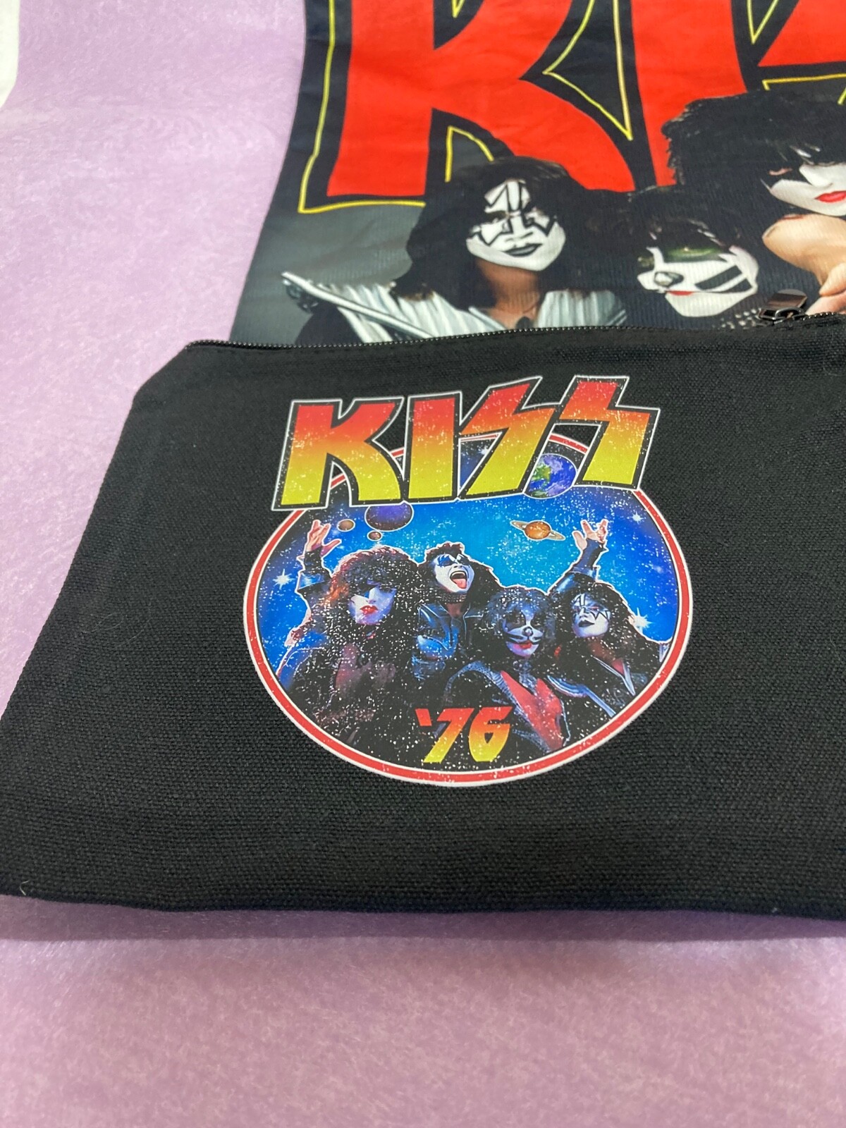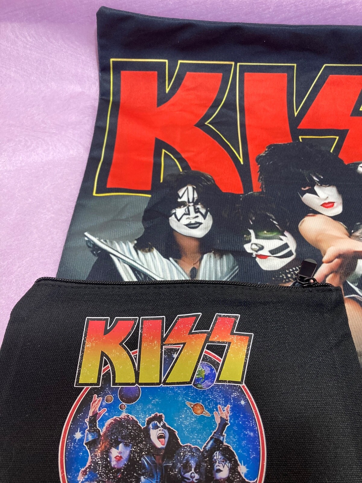 The product is a brand new vinyl Merchandise from the band Kiss, specifically their 1976 album "Destroyer." It is a first edition release in mint condition, including two pouches and one cushion cover. The vinyl is black in color and the inlay is also in mint condition. This rare find would be a great addition to any collector's music collection, especially for fans of Kiss and classic rock music from the 1970s. This listing is for merchandise from the band Kiss, specifically the 1976 album "Destroyer". This is a brand new item including two pouches and one cushion cover. The vinyl is black and the inlay is in mint condition. This rare find would be a great addition to any collector's music collection, especially for fans of Kiss and classic rock music of the 1970s. The pouches measure 8" wide by 6" tall, and the cushion covers measure 15" tall by 15" wide. Great design, make sure you grab this item!