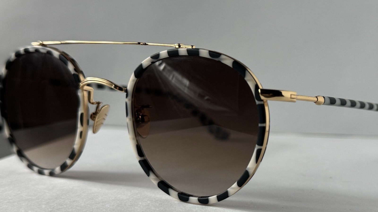 KREWE Porter 24K Titanium + Matte Domino Sunglasses A signature staple in the KREWE collection, the Porter frame blends classic round shaping with modern structure. With its balanced silhouette and lightweight feel, this bestseller is designed for everyday wear—refined, timeless, and effortlessly cool. This edition pairs matte acetate accents in the bold Domino colorway with glossy 24K gold-plated titanium hardware, offering a striking contrast of texture and tone. Petite integral titanium hinges, adjustable nose pads, and a flexible temple wire ensure a precise and comfortable fit. As with all KREWE frames, each pair is handcrafted with subtle variations in color and pattern, making every piece unique. Fitted with custom Amber Gradient lenses, the frame offers 100% UVA and UVB protection along with anti-reflective and scratch-resistant coatings for long-term clarity. The frame is prescription ready. Note: This item is 100% authentic and brand new, sourced from boutique overstock and showroom pulls. Because of this, original packaging (case/box) is not included. We stand by every item we sell—if you have any concerns, we’re here to help.