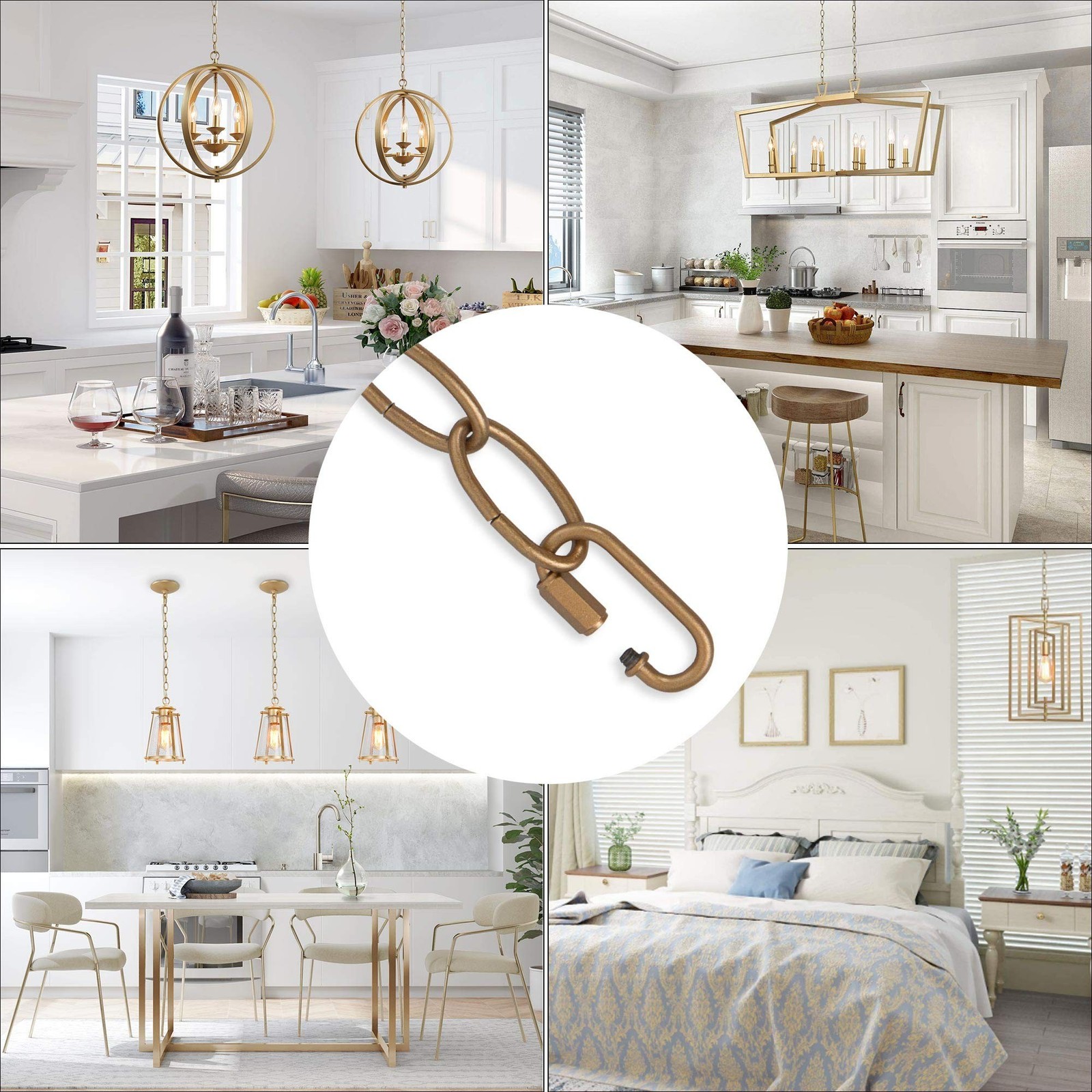 KSANA Antique Gold Lighting Chain, 20 Feet Chandelier Pendant Hanging Light Fixture Chain Extension Heavy Duty with 2 Connection Locks for High Ceiling Product Details Color: Antique Gold Brand: KSANA MPN: Antique Gold Lighting Chain UPC: Does not apply EAN: Does not apply Brand: KSANA Color: Antique Gold Material: Metal Style: Modern Light fixture form: Pendant Brand: KSANA Color: Antique Gold Material: Metal Style: Modern Light fixture form: Pendant Room Type: Dining Room Product Dimensions: 236.2"L x 0.8"W x 1.7"H Specific Uses For Product: Home Indoor/Outdoor Usage: Indoor Power Source: Corded Electric Installation Type: Suspended Special Feature: Adjustable Control Method: App Light Source Type: Neon Finish Type: Gold Shade Material: Metal Number of Light Sources: 50 Voltage: 120 Volts (AC) Theme: modern with an antique touch Light Color: Amber Included Components: Chain Number of Items: 1 Bulb Base: E26 Controller Type: Button Control Unit Count: 1.0 Count Water Resistance Level: Not Water Resistant Mounting Type: Ceiling Mount Fixture Type: Removable Assembly Required: No Manufacturer: KSANA Global Trade Identification Number: 20 Model Name: Antique Gold Lighting Chain Part Number: Antique Gold Lighting Chain Item Weight: 3.01 pounds Item model number: Antique Gold Lighting Chain Finish types: Gold Special Features: Adjustable Batteries Required?: No Date First Available: March 18, 2021 [Ideal Size] Gold Chain Length: 19.7 feet. Chain Weight: 3.1 pounds. The max load is 50 lbs, so this hanging chain is very sturdy to hang light fixture or other heavy things. [Durable and Safe] This lighting hanging chain is made of high quality metal with modern gold finish, durable and rust resistant for ensuring years of reliable performance. [Wide Application] This gold hanging chain is designed to install heavy things on high ceilings or replace the old chain. It is perfect with all DIY pendant lighting or chandelier project. You can use it as a decorative chain for hanging lights, chandelier, front door light or as a hanging chain for plants, fruit basket, bird cage and more. [Warm Notice] 30-day replacement and 24-month warranty against any defects in quality and craftsmanship. 24-hour quickly customer support. Any concerns please feel free to contact us. [Ideal Size] Gold Chain Length: 19.7 feet. Chain Weight: 3.1 pounds. The max load is 50 lbs, so this hanging chain is very sturdy to hang light fixture or other heavy things.