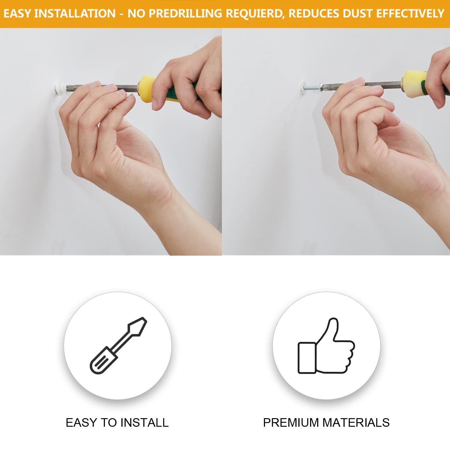 KURUI #8 Self Drilling Drywall Anchors, 100PCs Dry Wall Anchors and Screws Kit for Hanging Sheetrock, 50 Self-Tapping Plastic Drywall Hangers 50 Sheet Rock Screws, Heavy Duty 75LB Hanging PREMIUM NYLON MATERIALS PLUS GLASS FIBER – Made of high-quality hard nylon plastic mixed with highly robust glass fibers, these threaded self-tapping wall anchors are super hard, durable, anti-aging and wear resistant. They can hold objects with maximum weight of 75lbs and provide strong and sturdy grip into the wall, and the anchor will not damage the dry wall. 50 premium galvanized Phillips screws ensures reliable installation and hanging. PRACTICAL DESIGN FOR STABLE INSTALLATION - The threads cut deep into the material, providing a secure hold and pull-out resistant grip of the wall anchor and screw kit. The large threads are intended to hold firmly in drywall and can hold up to 75 pounds of objects. Suitable for hanging heavy duty pictures, photo frames, art, canvases. EASY INSTALLATION WITH SCREWDRIVER – These threaded drywall anchors feature sharp, pointed shanks that can be screwed into the wall without a pre-drilled hole by using a screwdriver or a screw gun, which produces less dust. Once the anchor is in the wall, the screw is inserted, the anchor will wedge tightly against the drywall. These plastic drywall anchors can easily be removed can be reuse. HEAVY DUTY & WIDE APPLICATION – The self-drilling drywall anchors are recommended for medium-duty applications and are very easy to install. They are perfect for hanging bathroom and kitchen accessories, shelving, light fixtures, mirrors, picture frames, curtain rods and small decorative shelves, and more. WORRY-FREE SHOPPING – Please check the package content as you received the product. we focus on product quality and value the shopping experience of our customers highly. Every product purchased from us comes with a 24/7 friendly customer service. Whenever you have a question, please feel free to contact us! We are a professional company specializing in and committed to creating fasteners and daily-use hardware of highest quality. We are eager for the details of products that customers can use with confidence. Our fasteners and daily hardware are made of high-quality materials to give customers worry-free shopping experience. 100 PCs Self-Drilling Drywall Anchors with Screws - Great for hanging light fixtures, mirrors, clocks and picture frames in drywall. No pre-drilling required - screw directly into drywall. INSTALLING A SELF-DRILLING DRYWALL ANCHOR: 1. Mark your hanging point. 2. With a rubber mallet or hammer, lightly tap the anchor into the wall until you get to the threads. 3. Use a screwdriver to screw the anchor into the wall until the head of the anchor is flush with the drywall. Again, if you opt to use a drill go slow and be careful. 4. Insert the provided screw into the center of the anchor and attach your object. WHAT YOU GET? 1 x 5.3"×3.1"×1.9" Plastic Organizer 50 x 1.6"×0.5" Self-Drilling Threaded Drywall Anchors 50 x #8×1-1/4" Galvanized Phillips Screws PLEASE NOTE: Use a suitable screwdriver. Try not to use electric screw guns, or use the low-speed level to prevent damage to the drywall. Please wear gloves to protect your hands. To know more about the product, the packaging and return policy, please don’t hesitate to contact us. Hope you have a great shopping experience! Shipping We offer FREE shipping on all orders! We ship within Three business days of payment, usually sooner. We use a selection of shipping services such as UPS, FedEx, USPS etc. We only ship to the lower 48 states, no APO/FPO addresses or PO Boxes allowed. Local pickups and combined shipping options are not provided at this time. Return You can return a product for up to 30 days from the date you purchased it. Any product you return must be in the same condition you received it and in the original packaging. Please keep the receipt. Payment We accept payment by any of the following methods: PayPal Please pay as soon as possible after winning an auction, as that will allow us to post your item to you sooner! Feedback Customer satisfaction is very important to us. If you have any problem with your order, please contact us and we will do our best to make you satisfied. Contact Us If you have any queries, please contact us via ebay. We usually respond within 24 hours on weekdays. Please visit our eBay store to check out other items for sale! Thank you for shopping at our store.