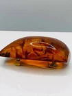 The Kaliningrad Amber Brooch is a vintage piece from the Soviet Era, featuring a unique asymmetrical design with an amber stone as the main focal point. Crafted with brass and genuine amber materials sourced from the USSR, this brooch is signed by the Kaliningrad Factory and showcases a retro theme of fruits, vegetables, and flowers. Perfect for occasions like Mother's Day, Christmas, anniversaries, birthdays, and Valentine's Day, this fine jewelry piece exudes a sense of nostalgia and ethnic charm, making it a timeless and meaningful accessory for women. There are my other items... https://www.ebay.com/usr/universeofjewelry