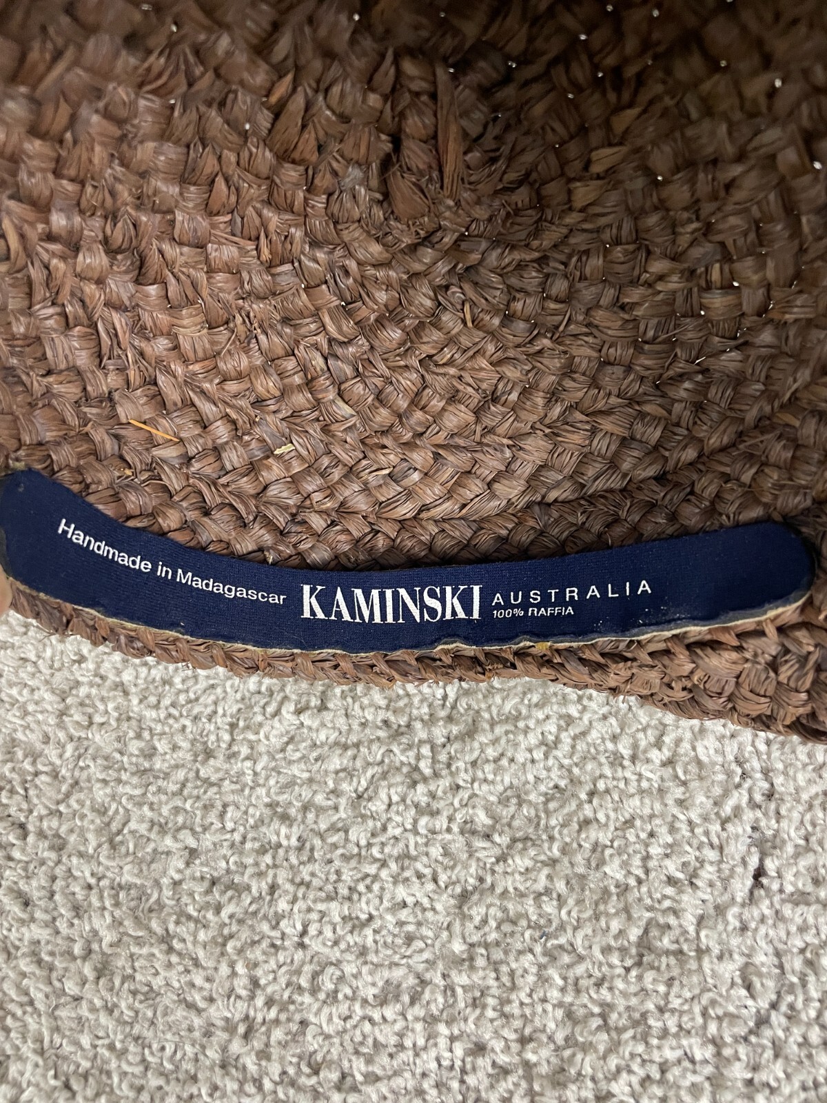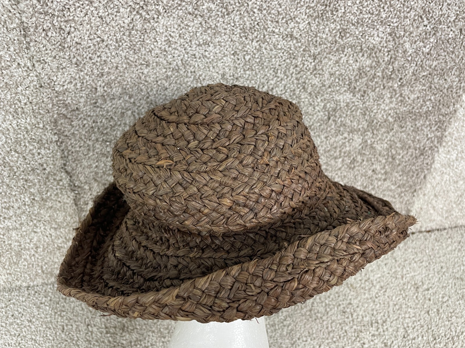 Kaminski Fedora Mens One Size Straw Hat Brim Raffia Turn Up Woven Solid Brown Item in excellent preowned condition. Minor wear and stains as shown in photos.