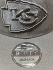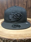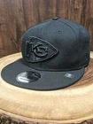 Show your team spirit with this stylish Kansas City Chiefs New Era 9Fifty Snapback Adjustable Hat Cap in black on black. This hat is perfect for any fan looking to represent their team in a trendy and comfortable way. The adjustable strap ensures a perfect fit for all-day wear, while the high-quality materials make it a durable addition to any fan's collection. Whether you're at the game or just out and about, this hat is the perfect accessory for any Chiefs fan.