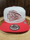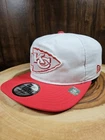 Elevate your headwear collection with the Kansas City Chiefs New Era The Golfer SnapBack Adjustable Hat. This stylish baseball cap features a crisp white and red color scheme, complementing the iconic Chiefs logo, making it an ideal accessory for any die-hard NFL fan. The adjustable snapback closure ensures a comfortable, customized fit for all-day wear. Crafted for versatility, this cap is suited for a variety of occasions, from a casual day out to cheering on the Chiefs at the game. The solid pattern and streetwear theme align with current fashion trends, while the cap's durable build and quality materials make it a reliable addition to your wardrobe. Whether you're on the golf course or hitting the town, this New Era hat is designed to deliver both style and comfort.