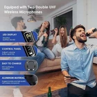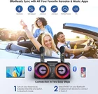 Karaoke Machine Bluetooth Speaker PA System w/ 2 Wireless Microphones Bass/Echo Karaoke Machine for Kids Adults, Portable Bluetooth Speaker with 2 UHF Wireless Microphone, PA System with Remote Control, LED Lights for Home Party, Wedding, Church, Picnic (Red-NT001) About this item ✅【30W High Power, High Volume, Full Range Surround Sound】 : The MusyVocay karaoke machine system with built-in 2*15W high-power full-range 360°surround speakers, features high-performance audio drivers and advanced digital signal processors, enabling intelligent noise reduction for clearer sound, stronger bass, balanced volume and elimination of all noise. The Distortion is less than 0.5%, achieving full-range surround sound, giving you a stunning audio visual experience.With its 6'' Full Range Speakers, it enhances your voice and streaming songs without any audio distortion, even at higher volumes. Making it the perfect choice for parties, home karaoke, weddings and indoor/outdoor gatherings. ✅【Customizing Microphone Function】 : Each microphone function can be adjusted independently. This means that you can customize settings such as microphone volume, ECHO (reverb) effects, and EQ (range from 0-5 sound effects ,Key Factor to the Mic Sound) separately for each microphone. This level of customization allows you to create a personalized and unique sound for your vocals. Ensuring the performers can enjoy a hassle-free performance without being influenced by others. ✅【Karaoke Machine with Lyric Display and Microphone Wireless Charging】 : Different with Other Karaoke Machines on the market,this portable karaoke machine features unique charging slots( length 9”/17.5cm) on the top, which supports to wirelessly charging for the 2 microhones and hold Almost any Mobile Phones or Tablet devices. While other karaoke machines slots only measure 4.33”(11cm) without microphone wirelessly charging function and only able to hold Phones with smaller lyric display. With our kareokee machine, you can enjoy more fluently and perfect singing performance. ✅【Multifunctional Karaoke Machine】 : The karaoke machine for adults is equipped with latest Bluetooth 5.1 wireless streaming chip, ensuring instant pairing, more stable transmission and longer distance coverage(Working range of up to 33 feet). It guarantees seamless connection and music playback with smartphones/tablets, serving as both a karaoke machine and bluetooth speaker, allowing you to host music parties anytime. This karaoke system also supports Micro TF card, Flash USB and AUX-in connections. It is compatible with iPhone, Android phones, TVs, iPads, tablets and PCs. The unique groove design on the karaoke machine allows you to place your phone and display lyrics conveniently. ✅【Stunning Lights with 9 Lighting Modes】 : The front of the speaker is equipped with illuminated and color-changing LED lights. Pressing the "LED1" button activates 5 internal ring light modes. Pressing the "LED2" button activates 4 external ring light modes. These 9 lighting modes can change colors in sync with the music's rhythm. It adds a touch of romance and liveliness to home karaoke, outdoor singing and festive gatherings. Convenient use in both formal and informal settings. ✅【2 Wireless Ultra-High Frequency Microphones】 : 2 karaoke microphone wireless adopt the latest ultra-high frequency technology, ensuring a stable signal while singing. When both the speaker and microphones are turned on, the microphones will automatically connect.The 2 microphones utilize advanced intelligent noise reduction technology and professional audio processors for optimal performance. This wireless karaoke machine ensures clear and high-quality sound transmission, reduces background noise, and provides the best audio experience. ✅【Portable Rechargeable Speaker System】 : The portable karaoke machine features a built-in 3000mAh high-performance rechargeable battery that is low power consuming, allowing for up to 8 hours of continuous music playback. The USB port can also function as a power bank, allowing you to charge your smartphone or tablet while on the go. It is lightweight, compact, and convenient to carry anywhere. It is perfect for family gatherings, car karaoke, beach trips, outdoor parties, speeches, conferences, churches, and more. Descriptions: Get ready for a home or outdoor karaoke with our karaoke system: Enjoy immersive sound and captivating lighting effects from the powerful dual 15W speakers. The light includes 4 enchanting outer light modes: Carousel, Monochrome Gradient, Multicolor Gradient, Music Sync; and 5 inner ring colors: Gradient, Soft Blue, Red, Green, Deep Blue Keep the fun going for 4-5 hours with the long-lasting 3000mAh speaker battery. Easily mute vocals with the Music Original feature to highlight your own singing. Have a blast with friends using the 2 wireless microphones, perfect for duets. Stay connected even at a distance: the Bluetooth range extends up to 118ft, while the microphones cover 72ft. Charge the microphones your way: either via the convenient storage slots or USB-Type-C. Experience the thrill of versatile singing, exceptional sound, and engaging lighting effects. Step into limelight, sing your heart out, amplify fun and create unforgettable memories! Specifications: Product size: 32*15.5*15cm (12.6*6.1*5.9’’) N.W.: 2.5kg (5lb) Function: Bluetooth/EQ/Music original/ECHO Interface: TF Card/ USB Disk/ Aux Package includes: 1* Karaoke Machine 2* Wireless Microphone 1* Type-C Charging Cable 1* Aux Cable 1* User Manual Different with Other Karaoke Machines on the Market,NT001 Supports up to 9 Colorful Party Effects Disco Lights with More Romantic and Dynamic Vibes. Others on the Market Ususally Support 3 or 1 or None Light Modes. Just Press LED 1 Button for 5 Color Inner Ring and LED 2 for 4 Color Outer Ring 2*15W High Power Speaker Bluetooth Karaoke Machine Supports All Devices Wireless Mic Charging Clear Lyric Display Pho