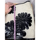 A spacious Kate Spade New York tote bag featuring a cream canvas exterior adorned with playful black patent leather daisy appliques. This stylish carryall boasts glossy black patent leather trim and matching double shoulder straps, offering a chic contrast to the textured canvas. The interior is lined and includes a zippered pocket for secure storage. Perfect for everyday errands, weekend getaways, or a stylish addition to a casual outfit. Exterior Material: Canvas, Faux Leather Style: Tote Exterior Color: Beige Department: Women Product Line: Kate Spade New York Lining Color: White Handle/Strap Material: Faux Leather Handle/Strap Color: Black Lining Material: Canvas Hardware Color: Gold Pattern: Monogram Closure: Zip Keywords: Kate Spade tote, canvas bag, daisy print, patent leather, shoulder bag, designer handbag, everyday bag, travel tote, casual chic, summer style, black and white, iconic print, chic accessory